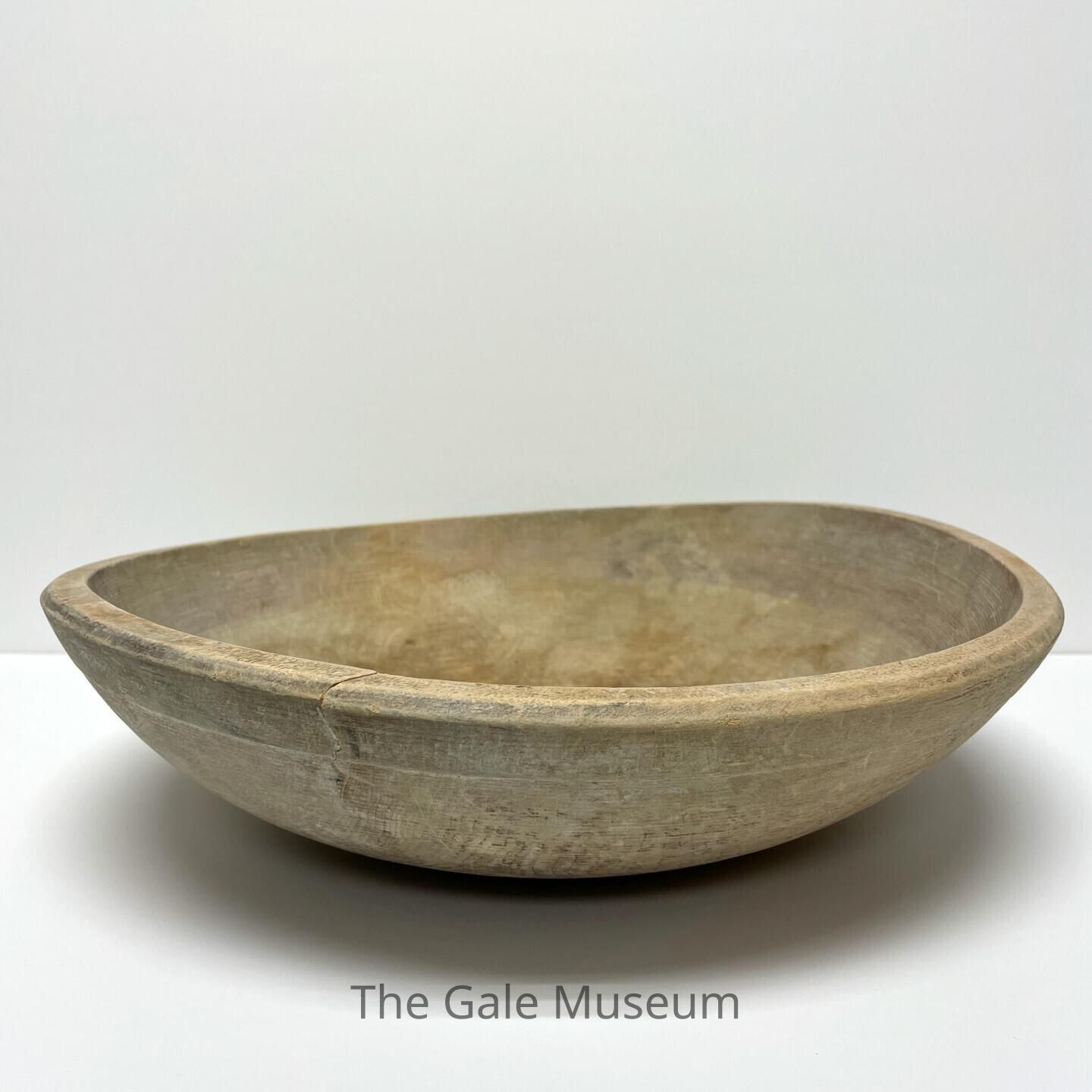 Handmade wooden bowl. The wood has a smooth use patina throughout, with some darkening at the bottom inside of the bowl. The wood is unfinished, and of a lighter color.Acquisition