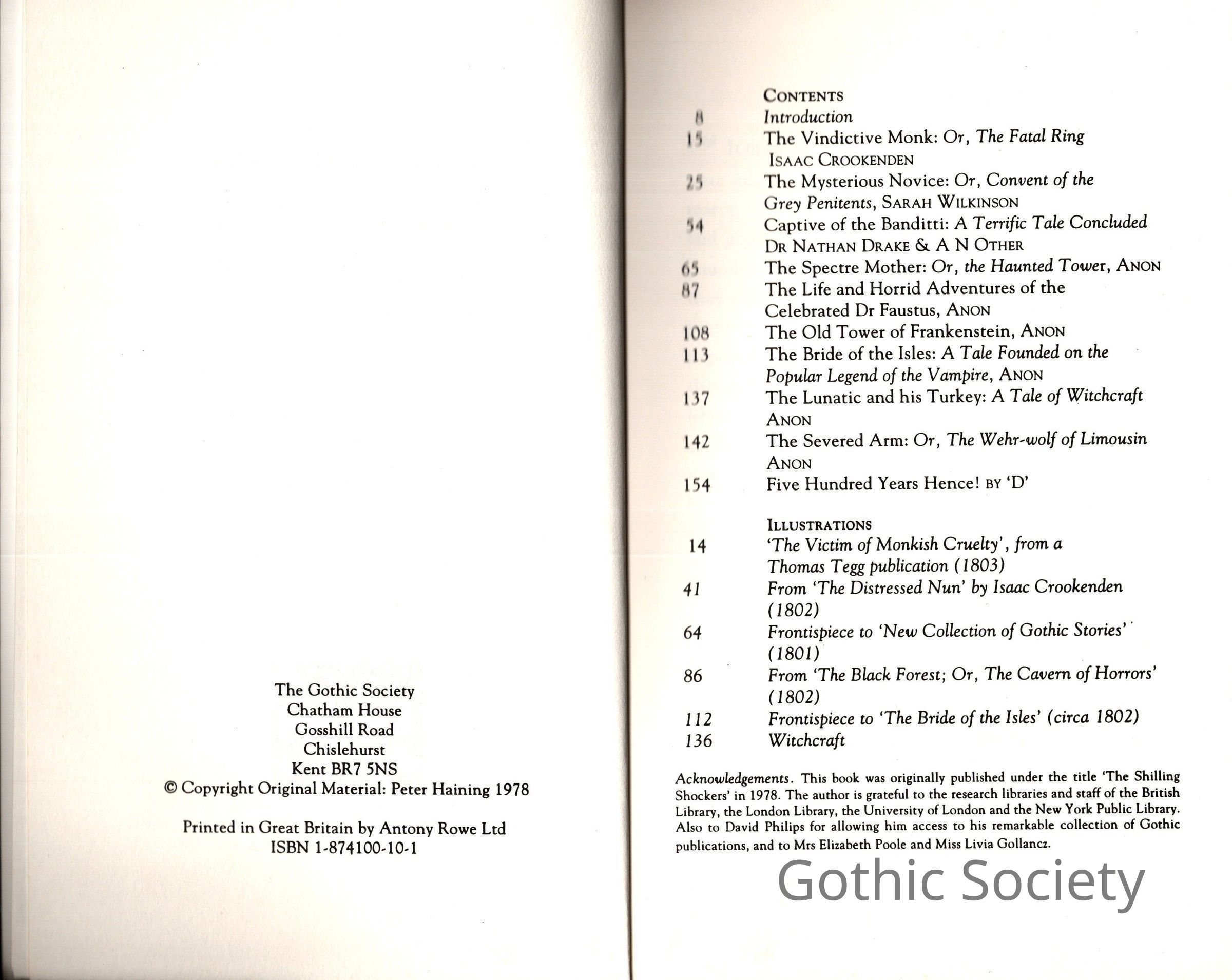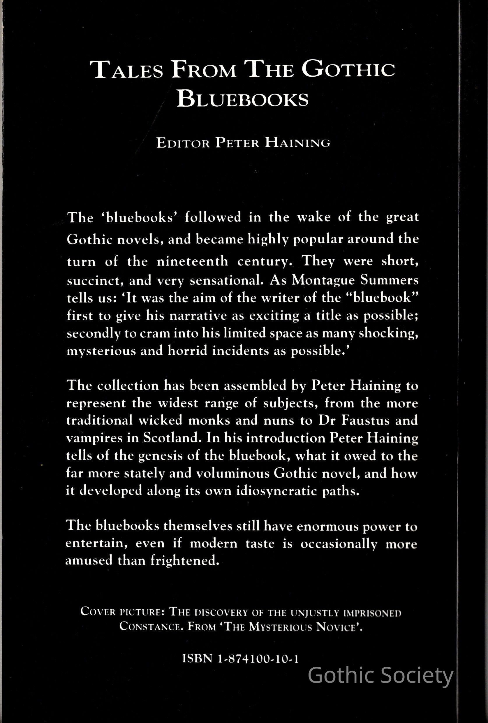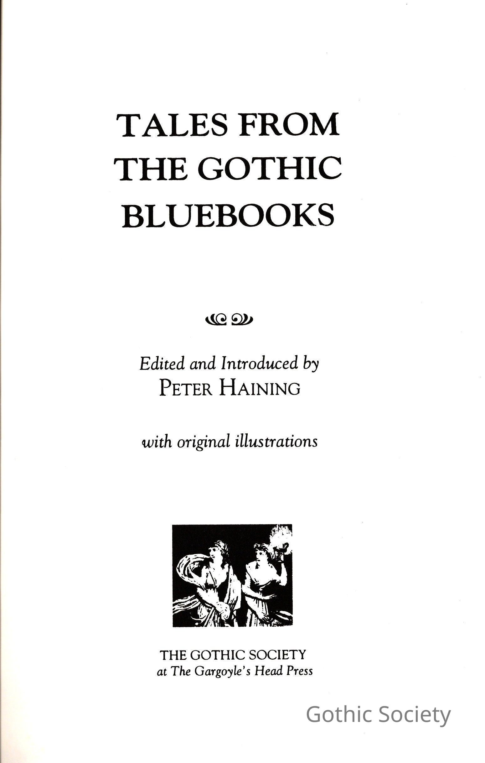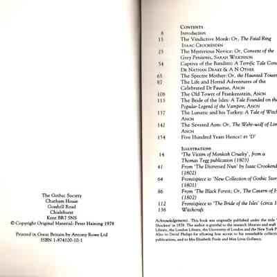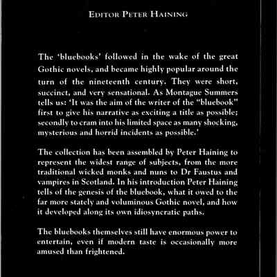 "Tales from the Gothic Bluebooks" - the prelims leave much to be desired, giving the date of Haining's original text (1978) but not the date of publication, and the contents page appearing too soon in the volume, without an intervening blank page to set it off.