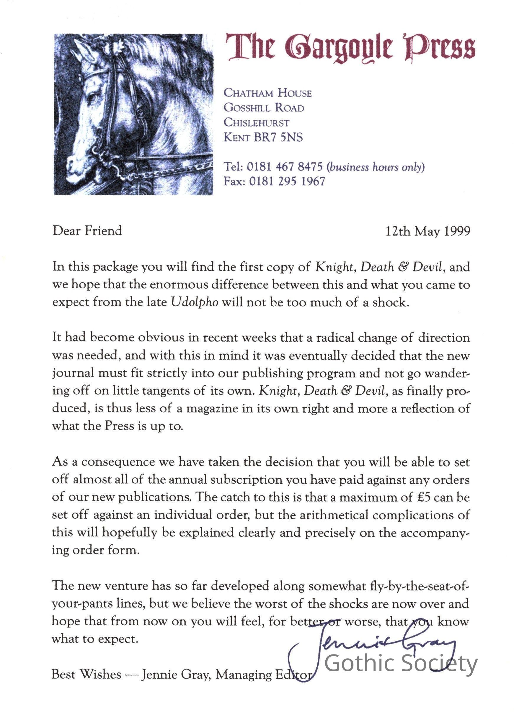 Letter of 12 May 1991 which accompanied ther first (and, in effect, the only) magazine.