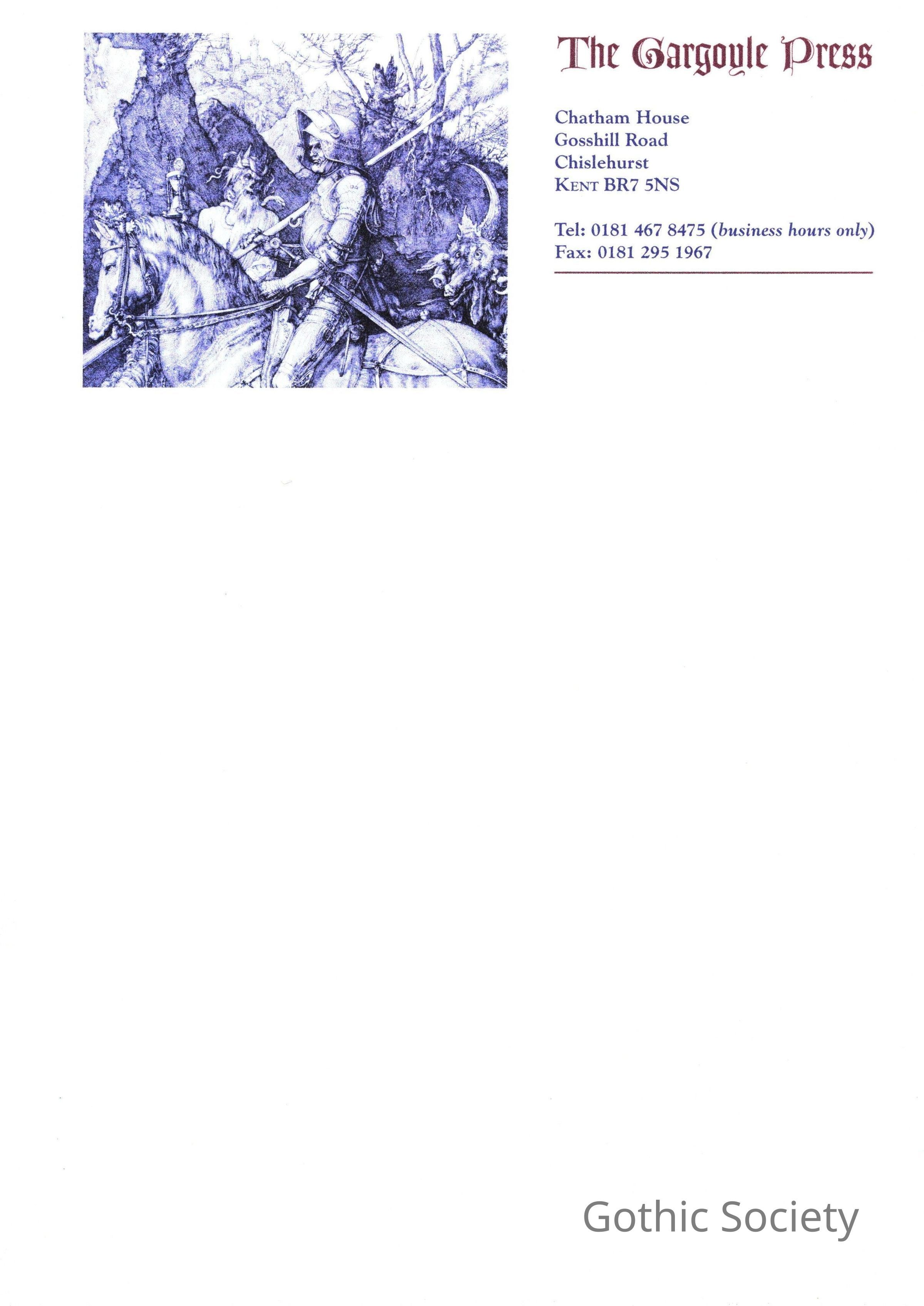Letter paper for the Gargoyle Press