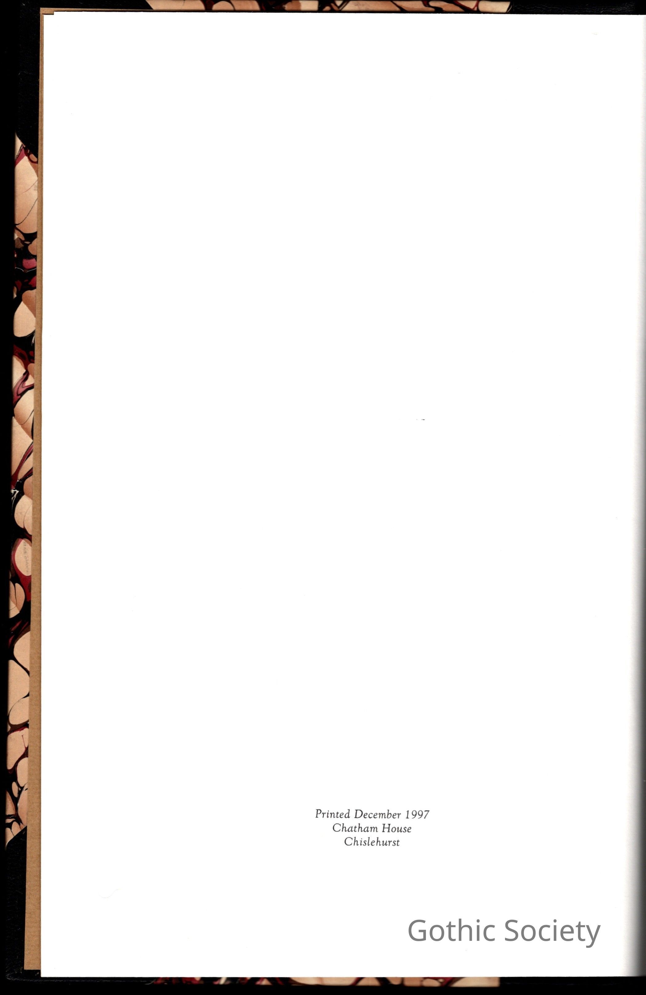 "The Prayer of Richard III", made for the Gothic Society earlier in 1997, was the first one of this series of handmade books. June Struben-Clinton (who designed and illustrated "The Prayer") was very influential at the dawn of these projects. For more on June, see "The Prayer of Richard III" entry on this catalogue.