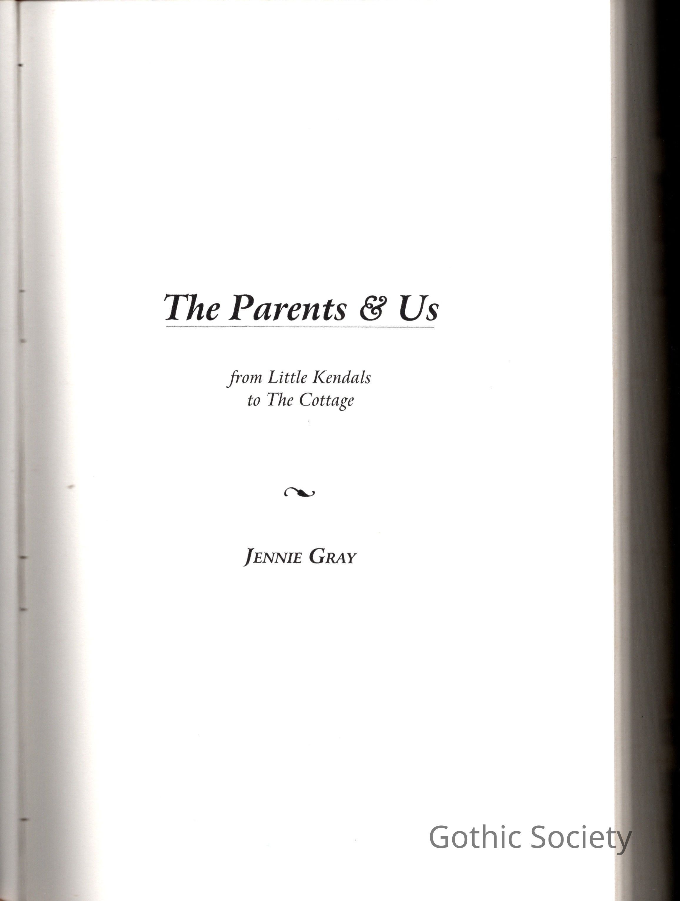 "The Parents & Us: From Little Kendals to The Cottage", by Jennie Gray. Printed in April 1998, this was a precursor of The Gargoyle Press publications of the following year. For further details of the connection between this and The Gargoyle Press, see the "Joe and Ogus" entry on this catalogue.