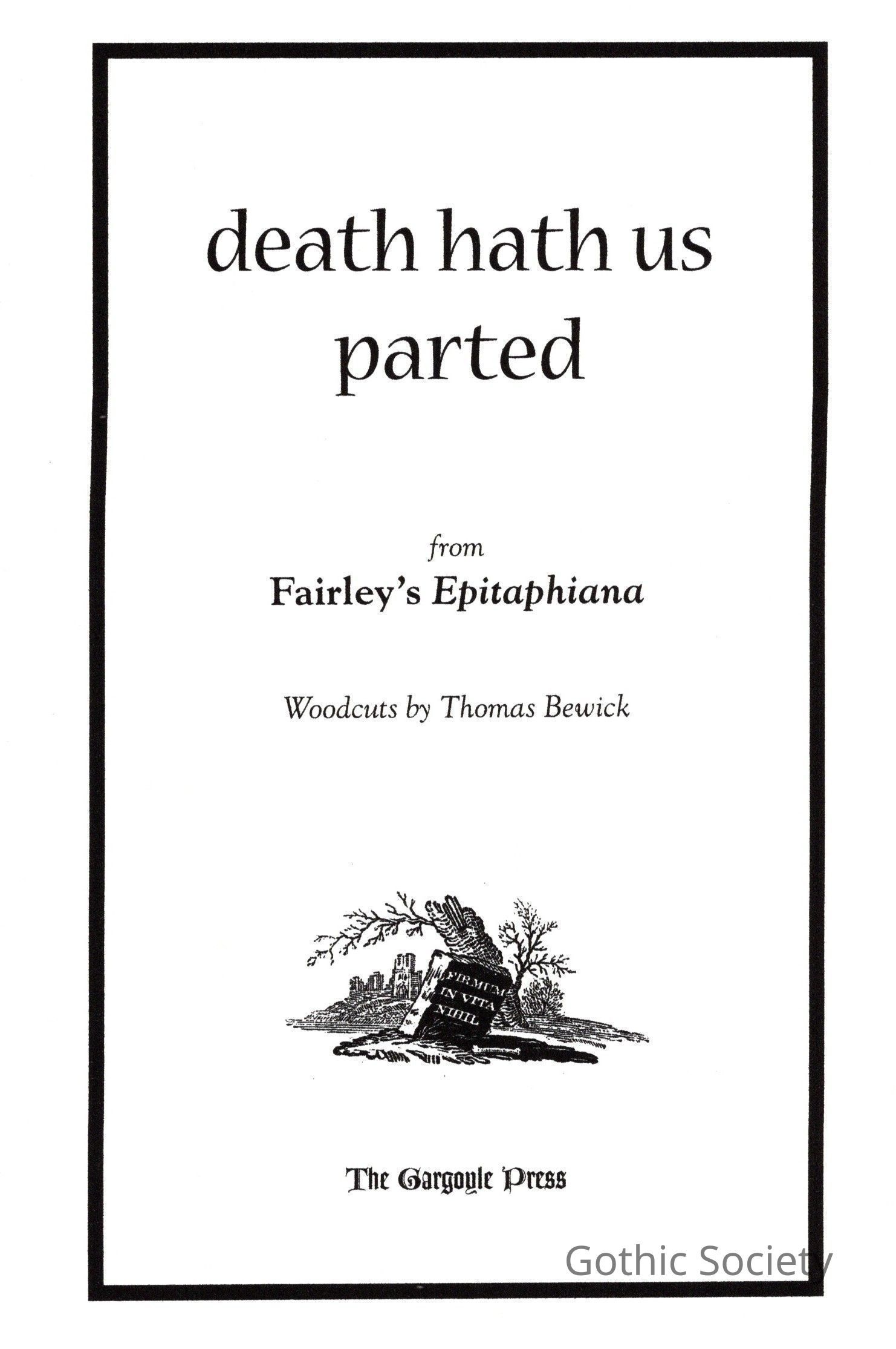 "death hath us parted", from Fairley's "Epitaphiana", introduction by Jennie Gray. The stunning handmade endpaper is shown here. Published October 1999.