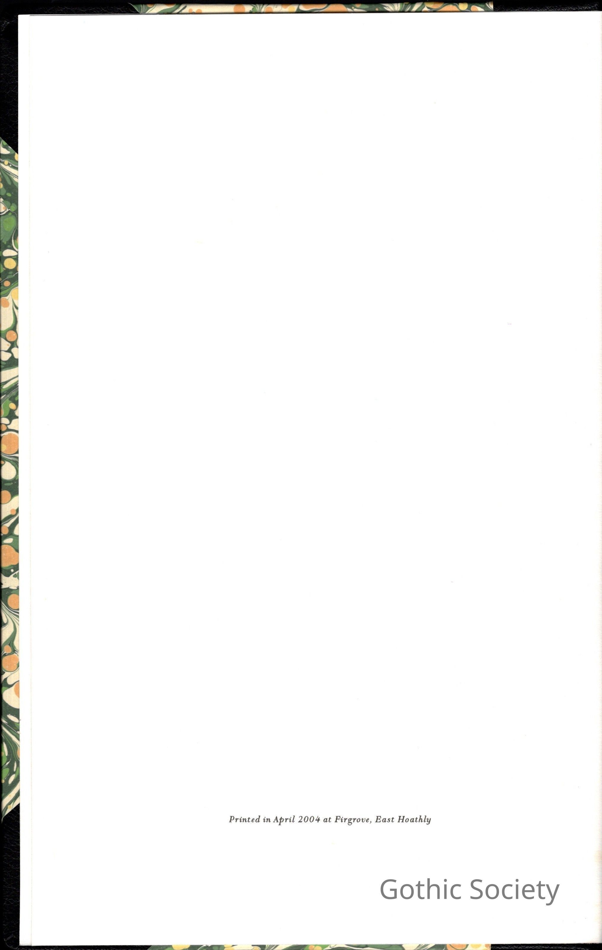 Long-delayed outlier to the books printed at Chatham House at the end of the Gothic Society era. "Longridge", part IV of "The Parents & Us", was the only book printed at Firgrove, East Hoathly, East Sussex. It was six years late and the month when it was printed was April 2004.