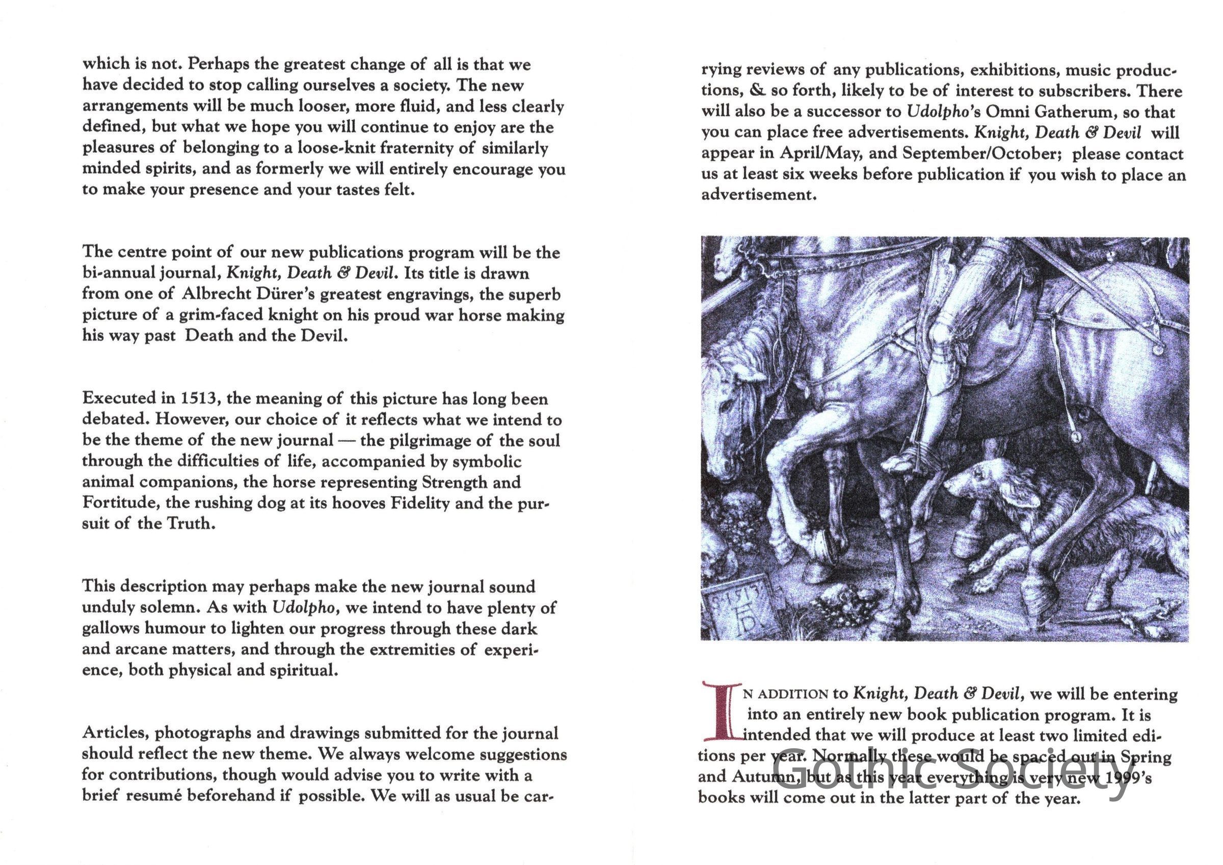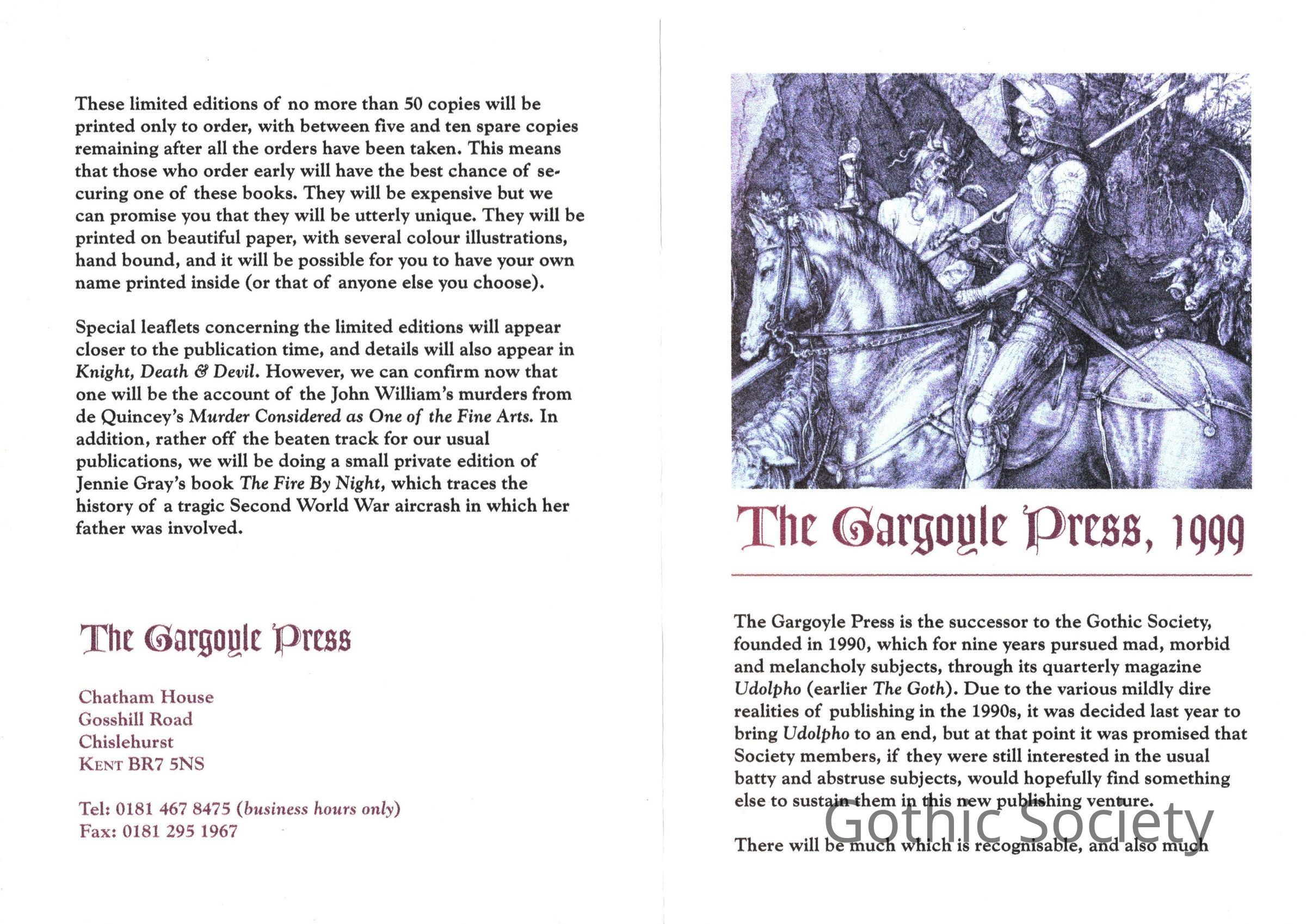 Leaflet about The Gargoyle Press, describing it as the successor to the Gothic Society.