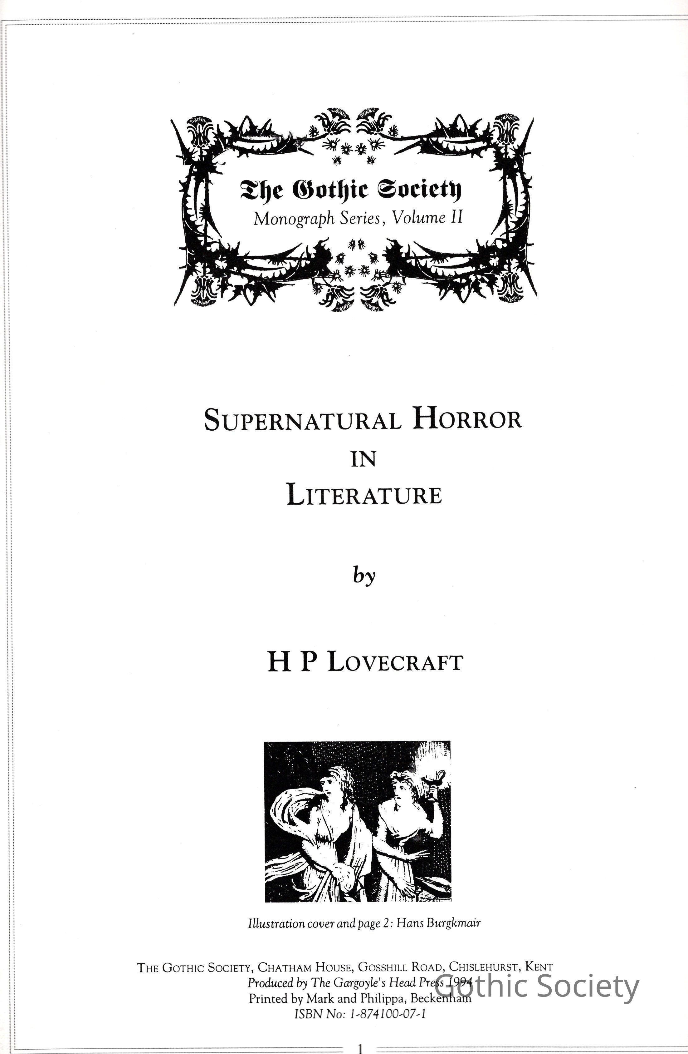 GS: Books, 1994, "Supernatural Horror in Literature"