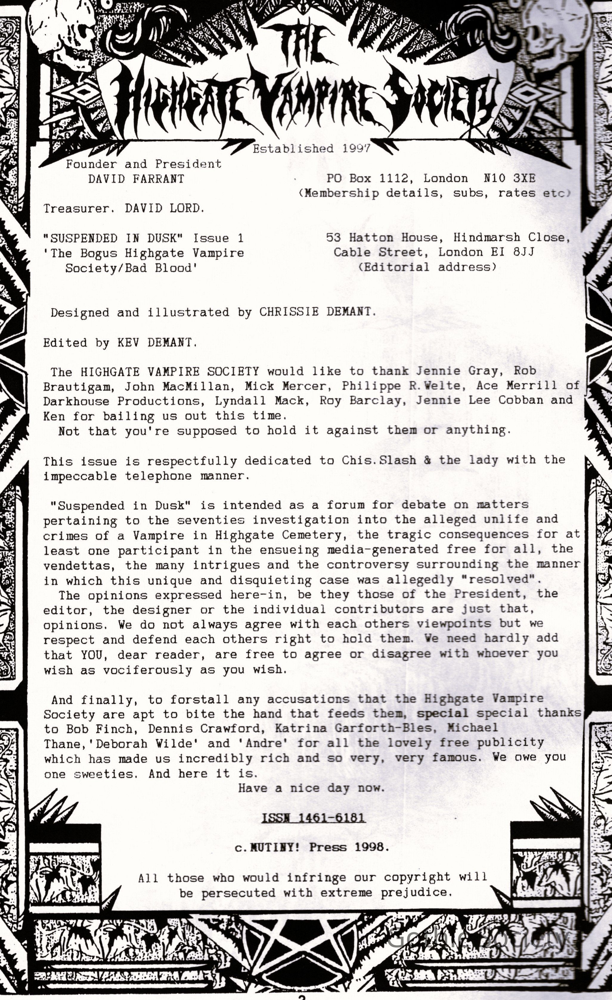 Mutiny! Press, 1998. Designed and illustrated by Chrissie Demant, edited by Kev Demant.