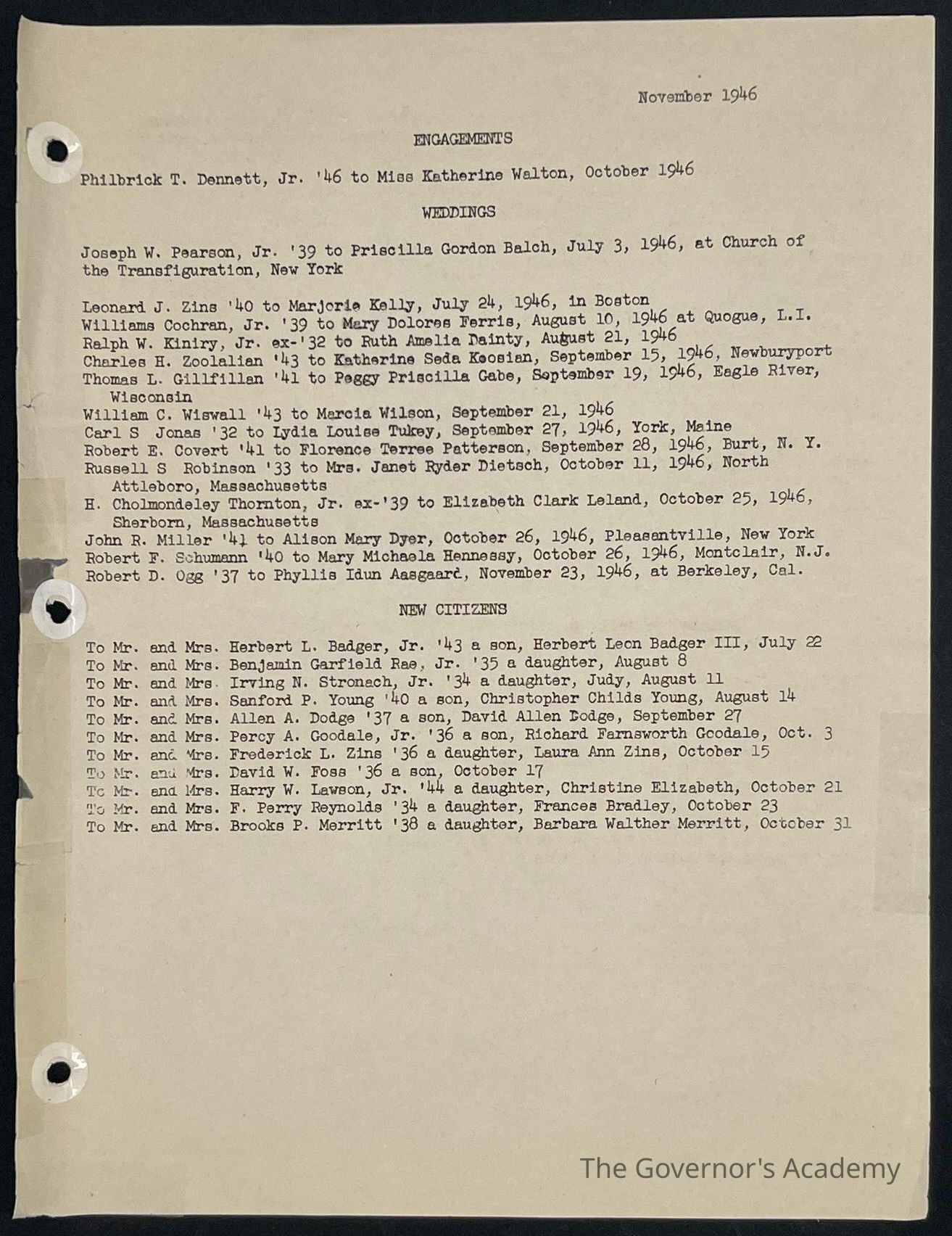 The Governor's Academy Archives