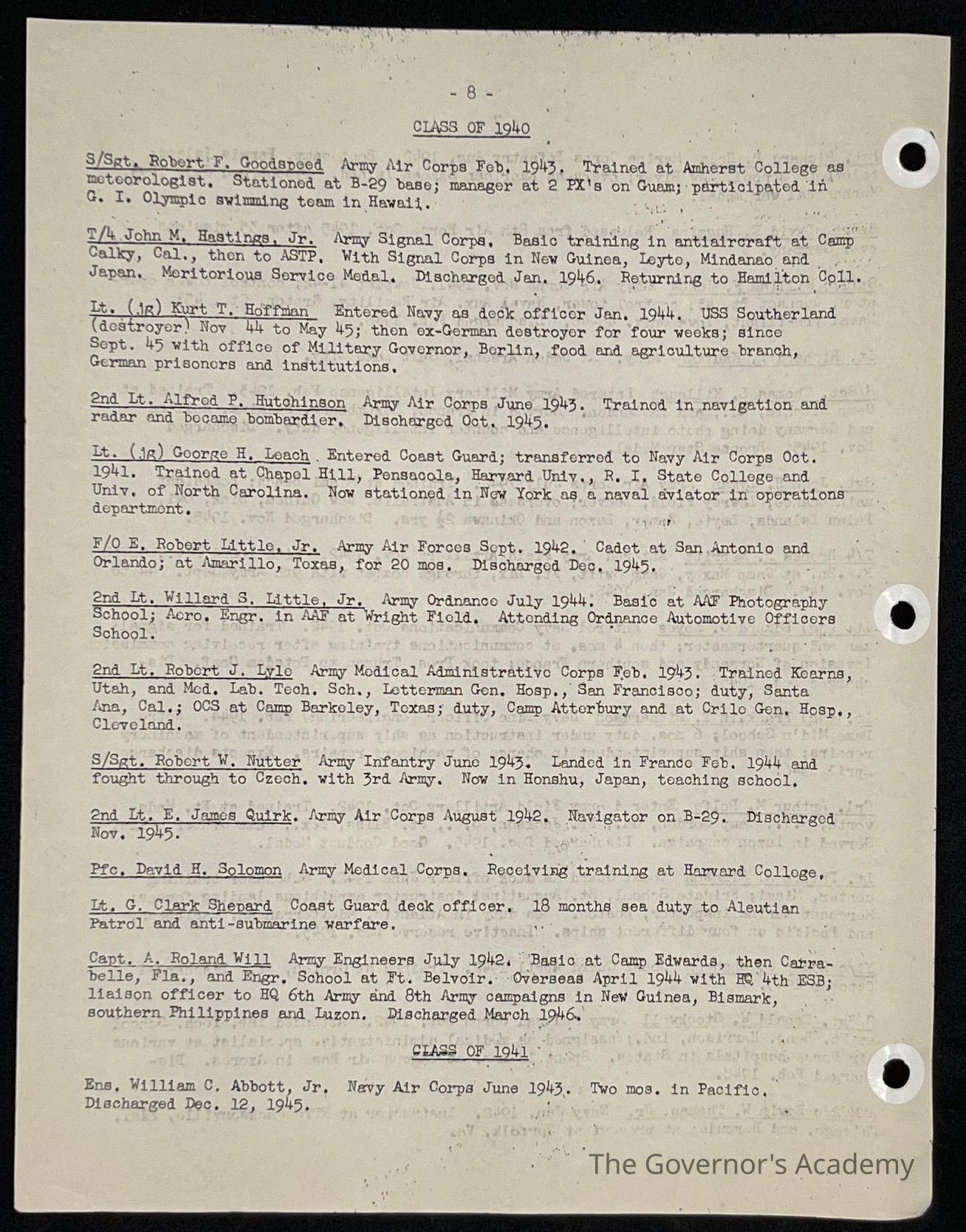 The Governor's Academy Archives