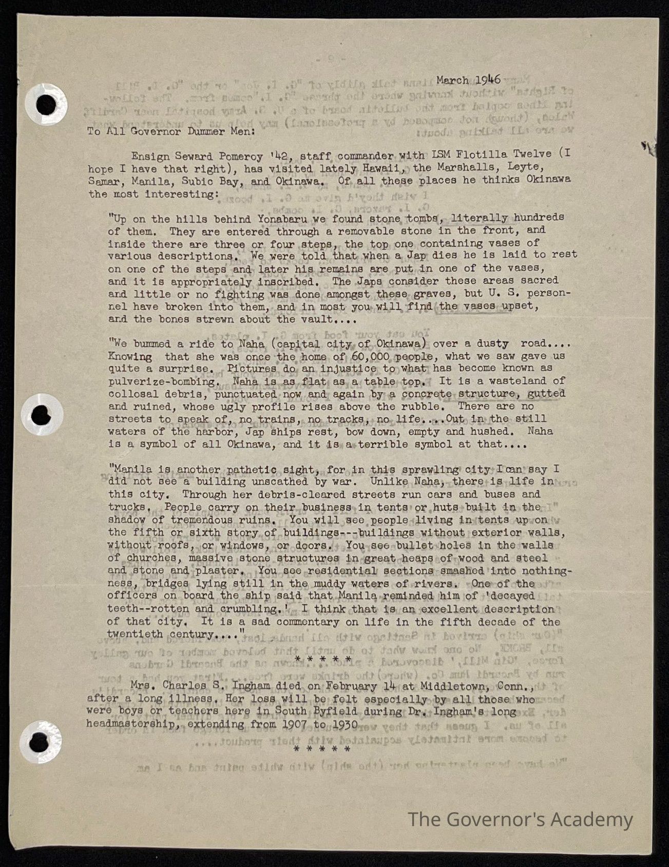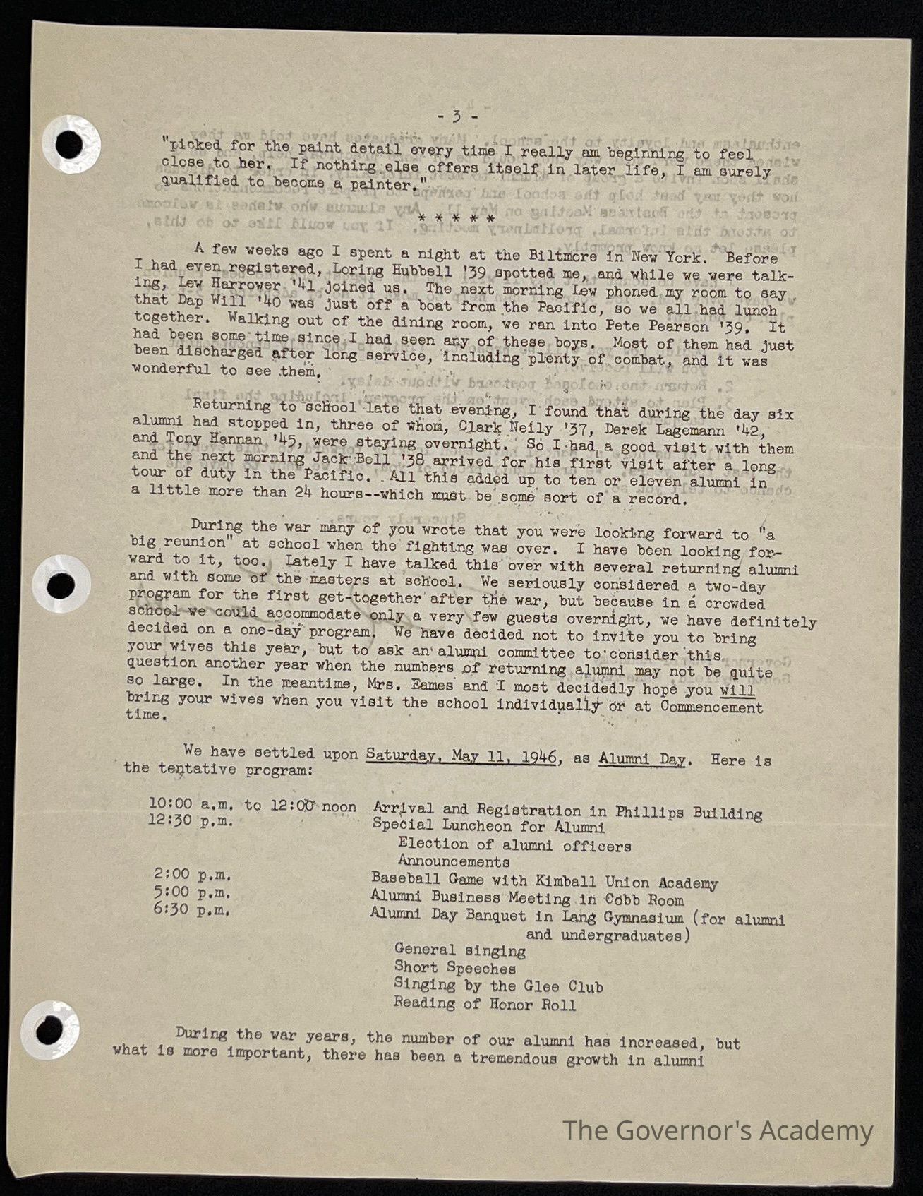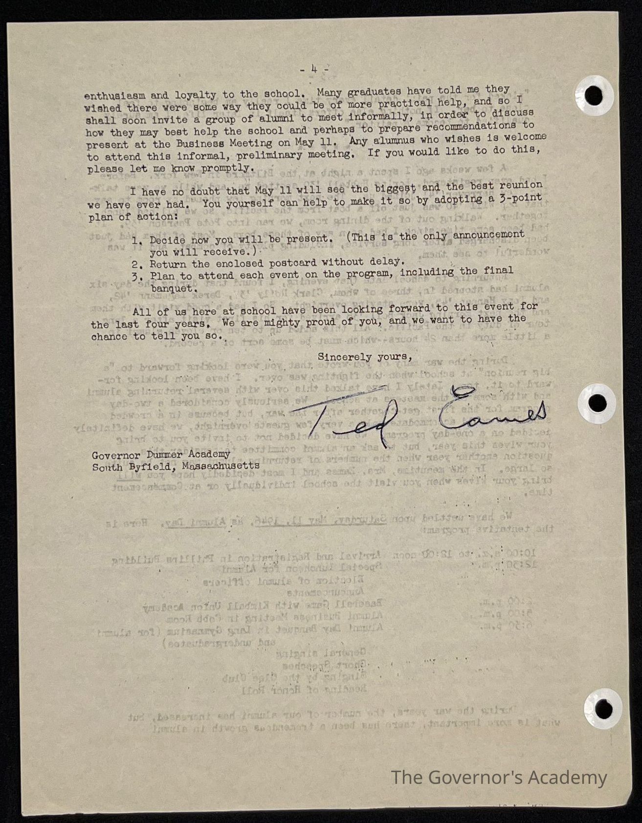 Ted Eames letter to alumni March 1946