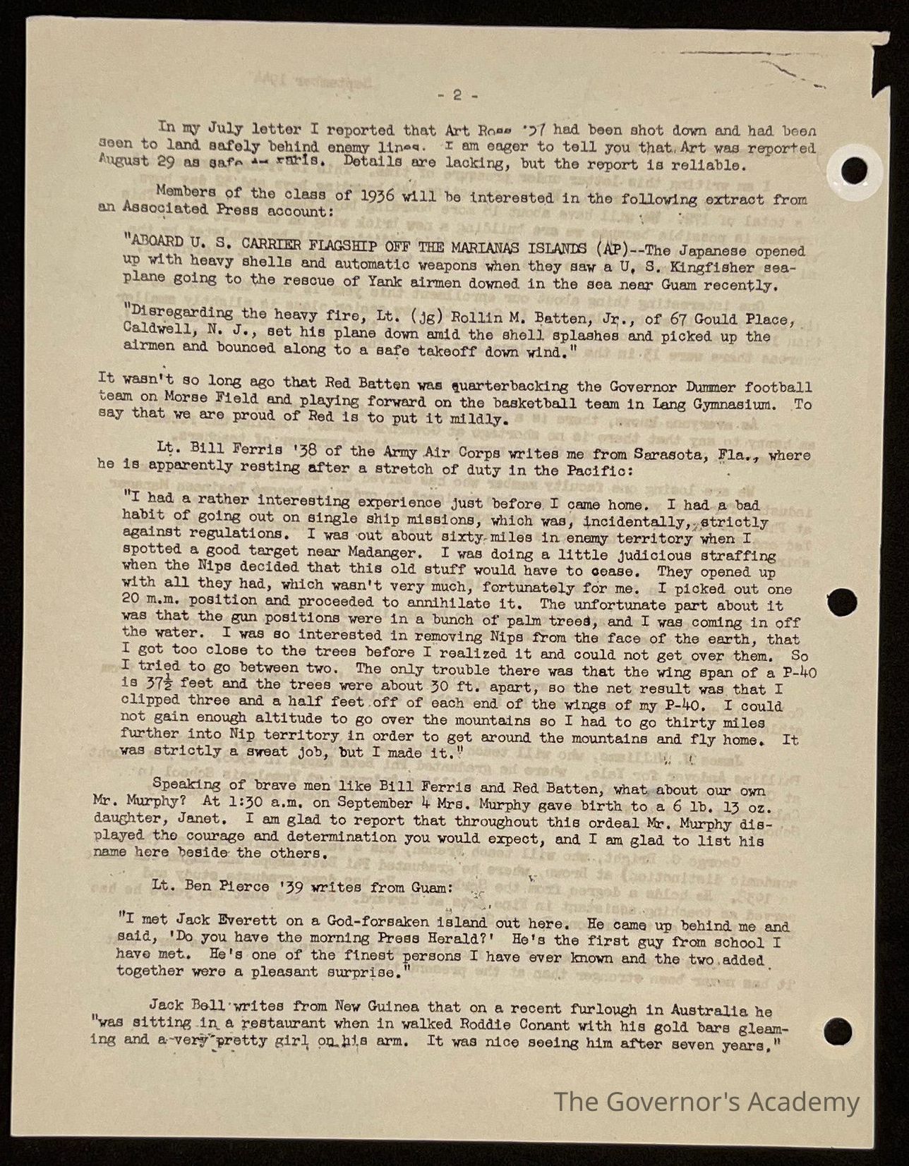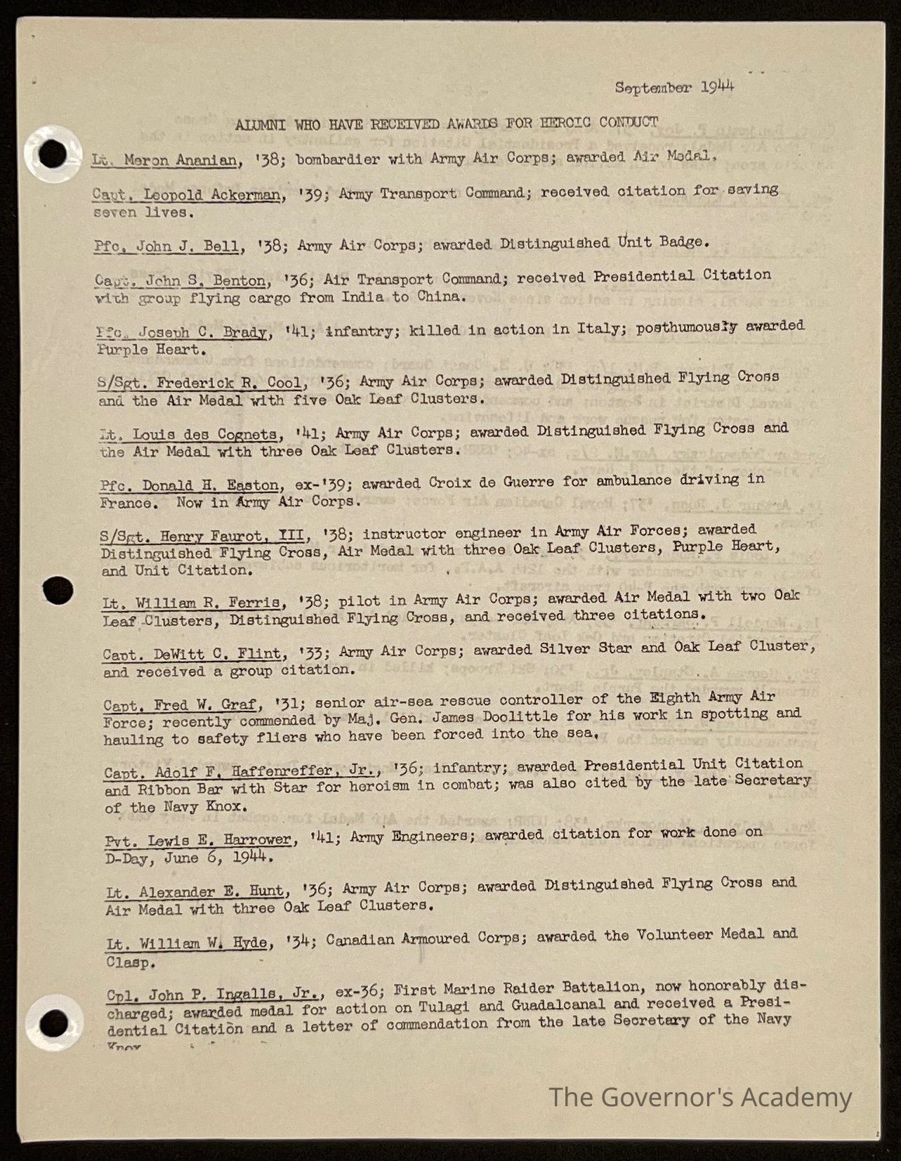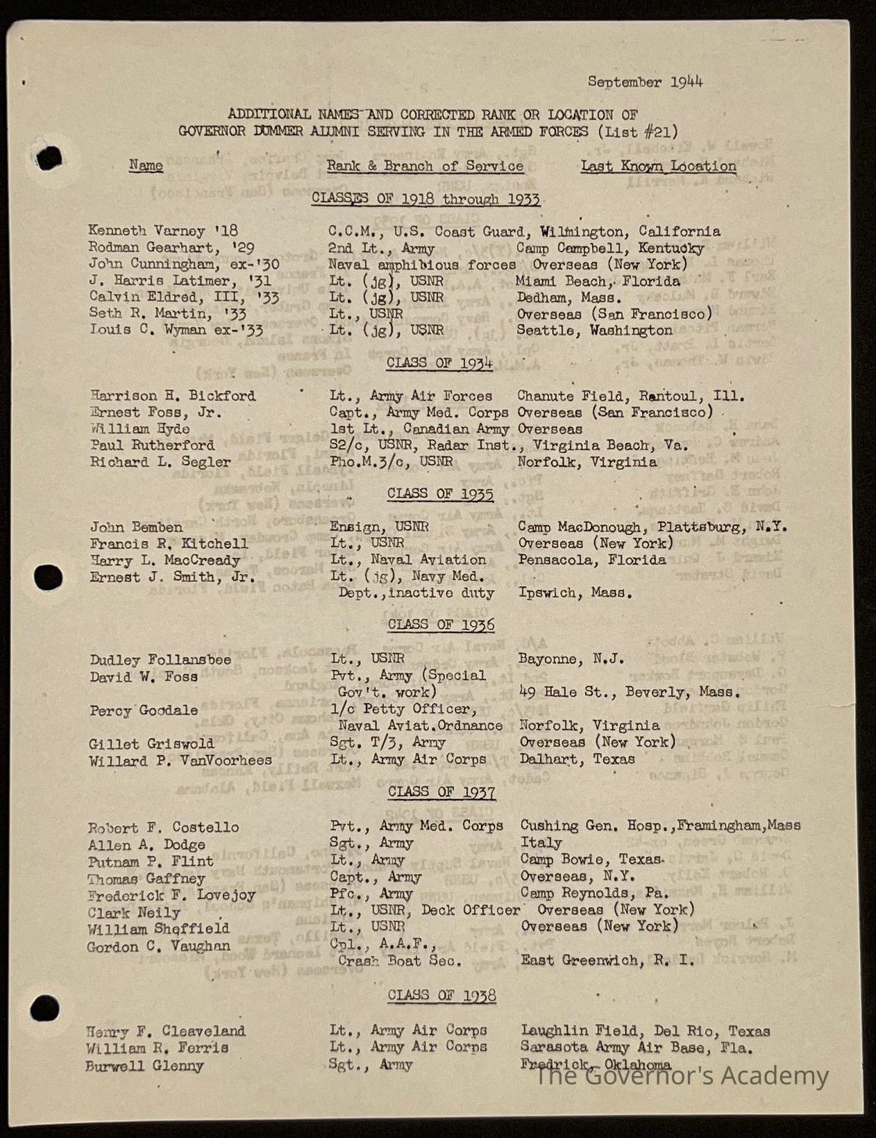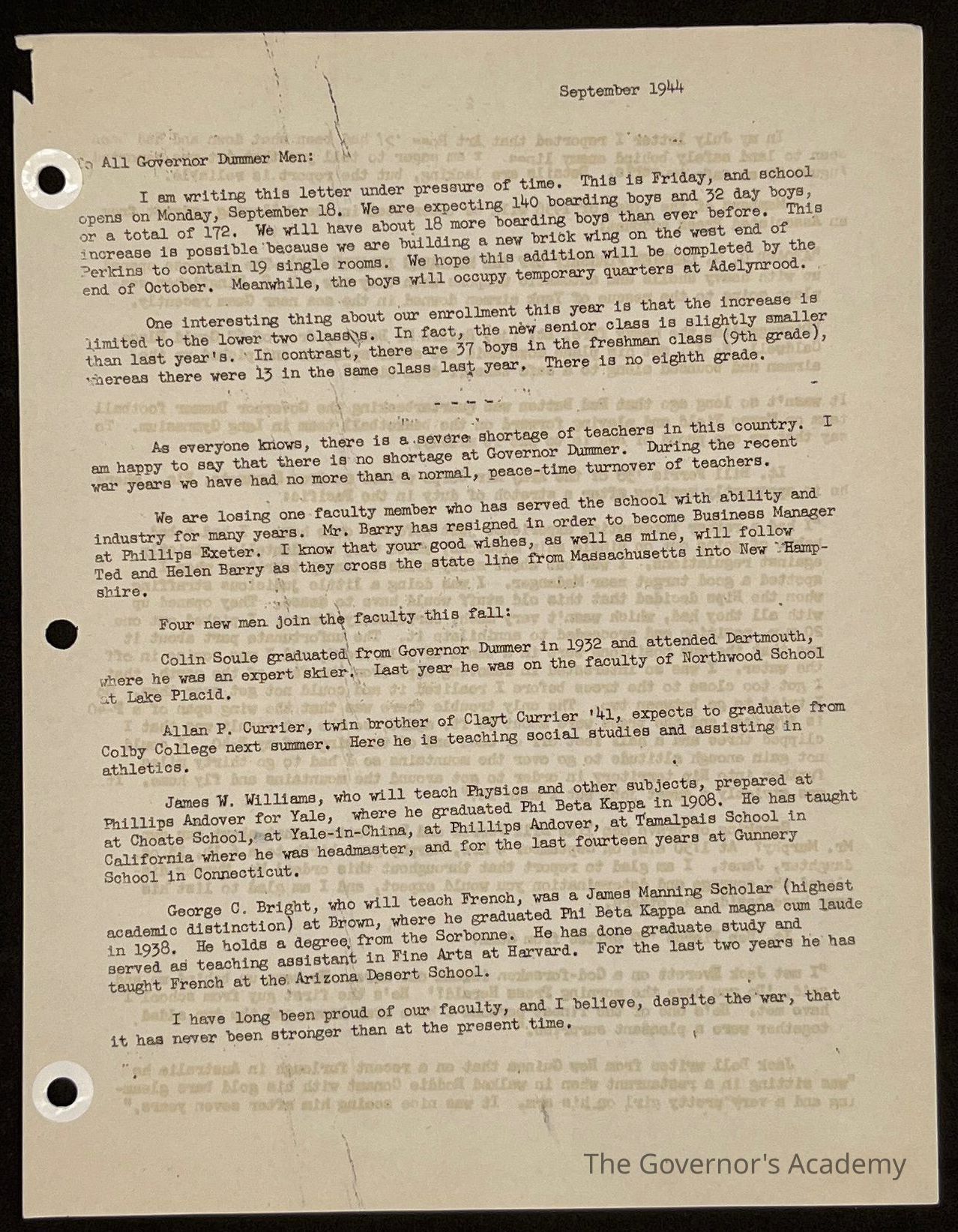 Ted Eames letter to alumni September 1944