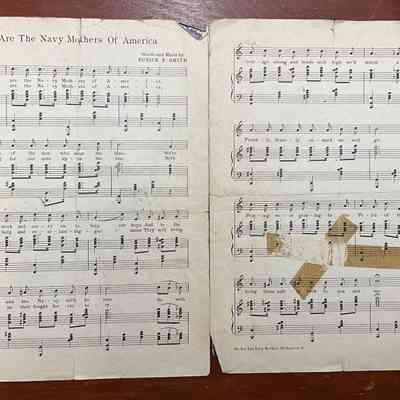 “Song” We Are The Navy Mothers of America. Words and music by Mrs. Eunice F. Smith. Created in 1942.Condition