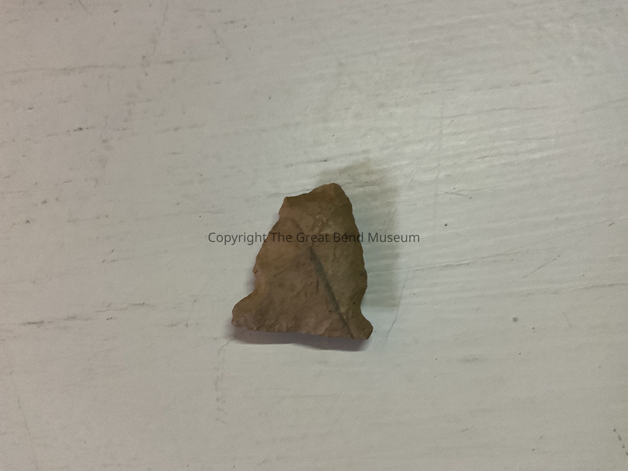Small triangle shaped point. Light brown in color, straight basal edge. Point is Biconvex in center. Very tip of point has small chip.one side of point has criss cross star shape in the stone.very weak shoulders on this point.Acquisition