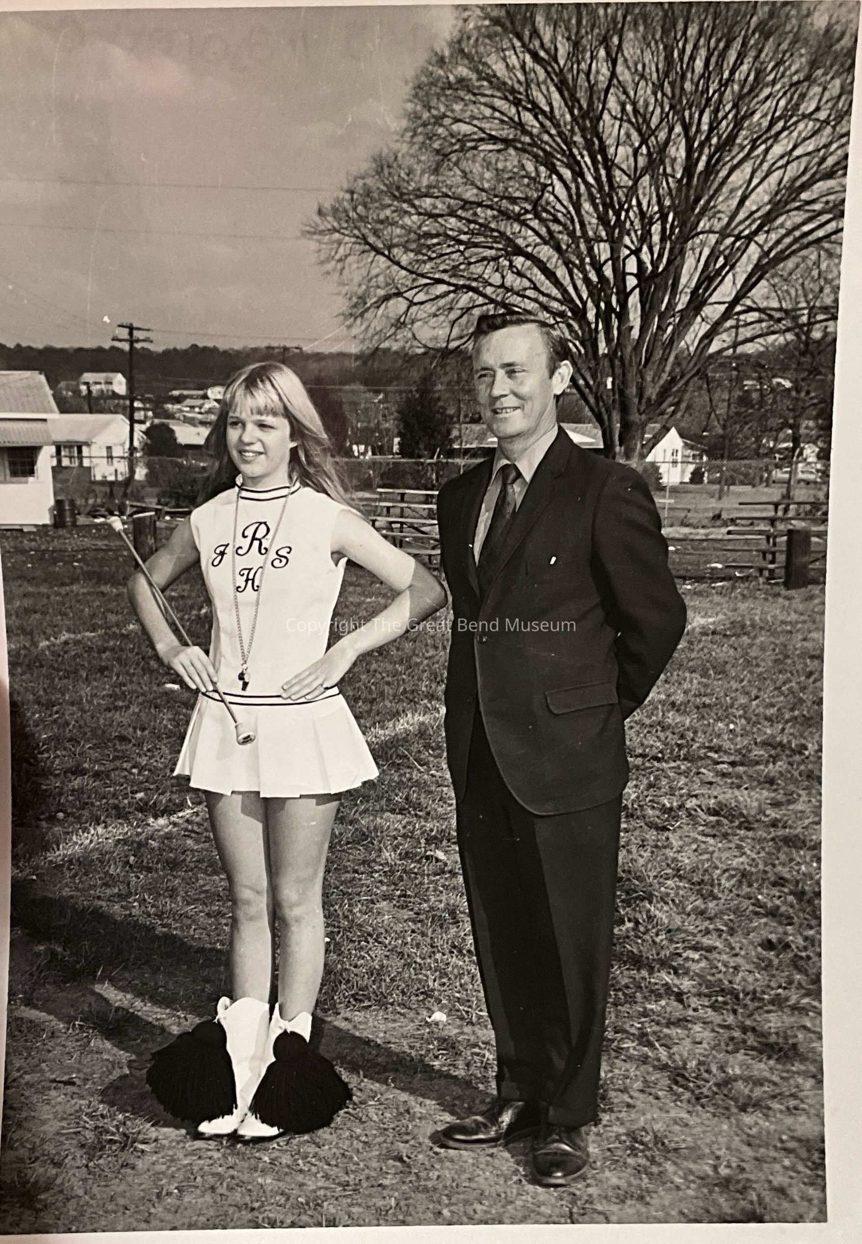 Jim Porter (Right) standing next to the 1970s RMS majorette (Left).