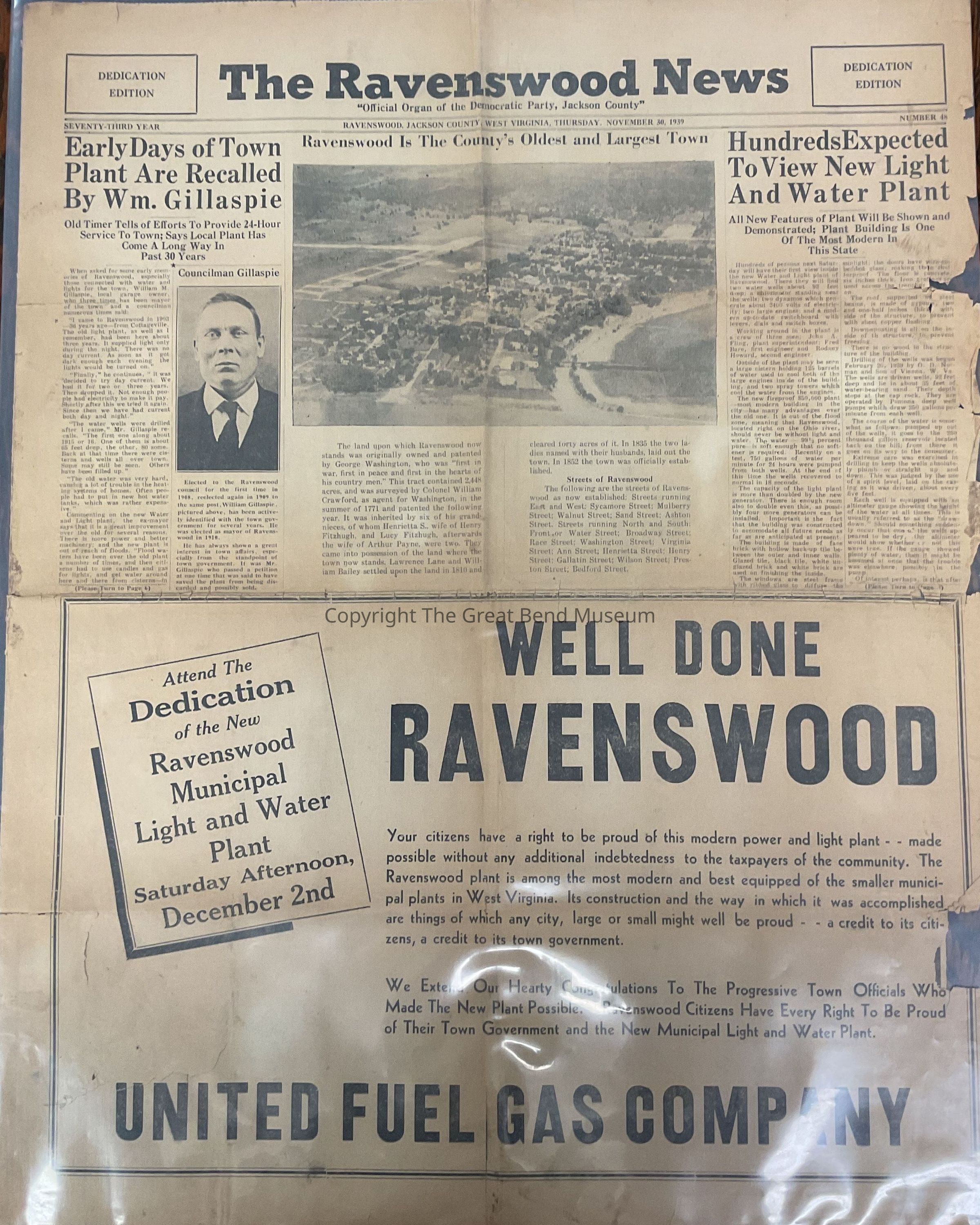 Early Days of Town Plant Are Recalled by W.M. Gillospie.
