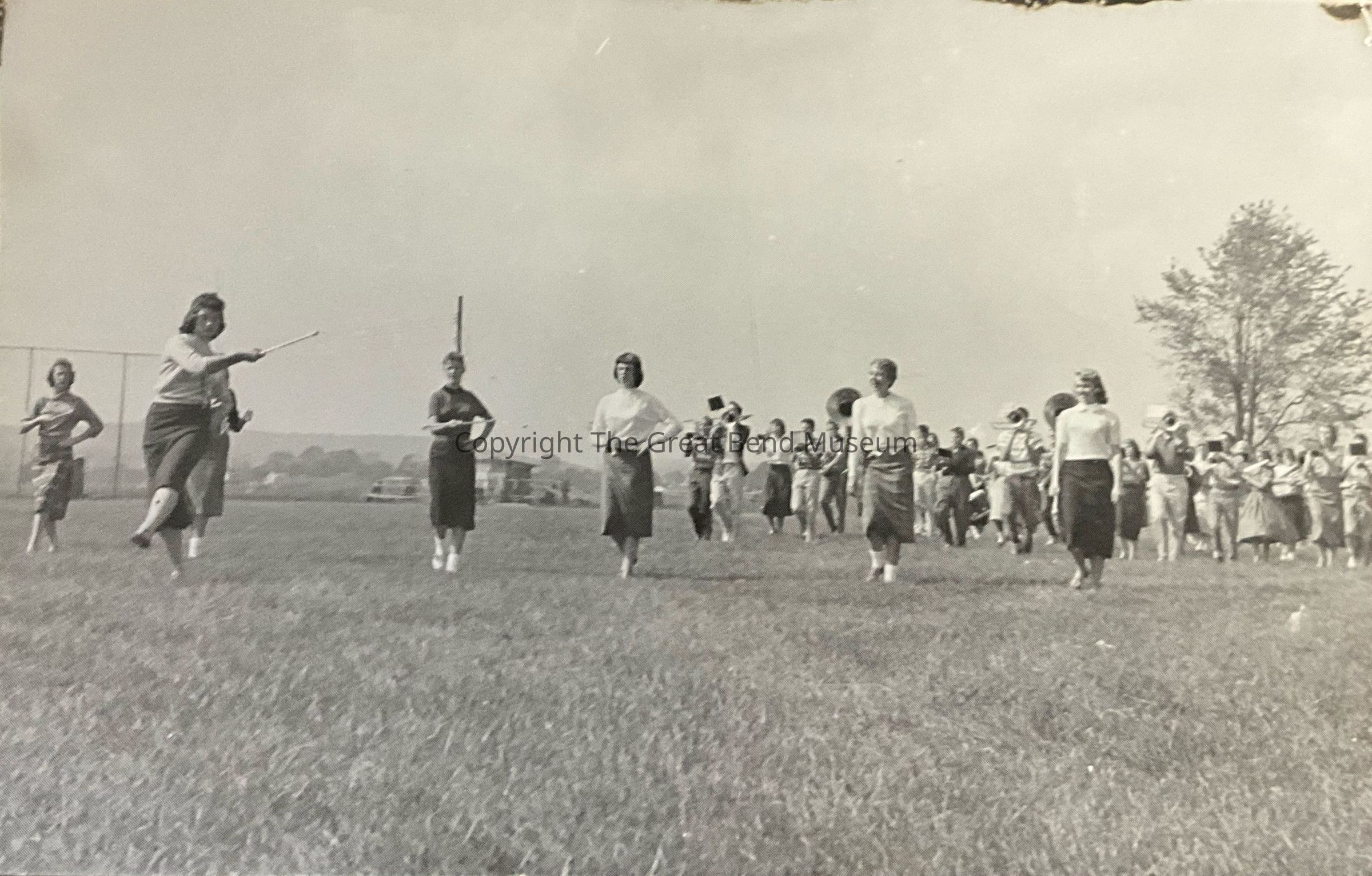 On Ravenswood High School Football Field. Jean Ann Suck is head majorette
