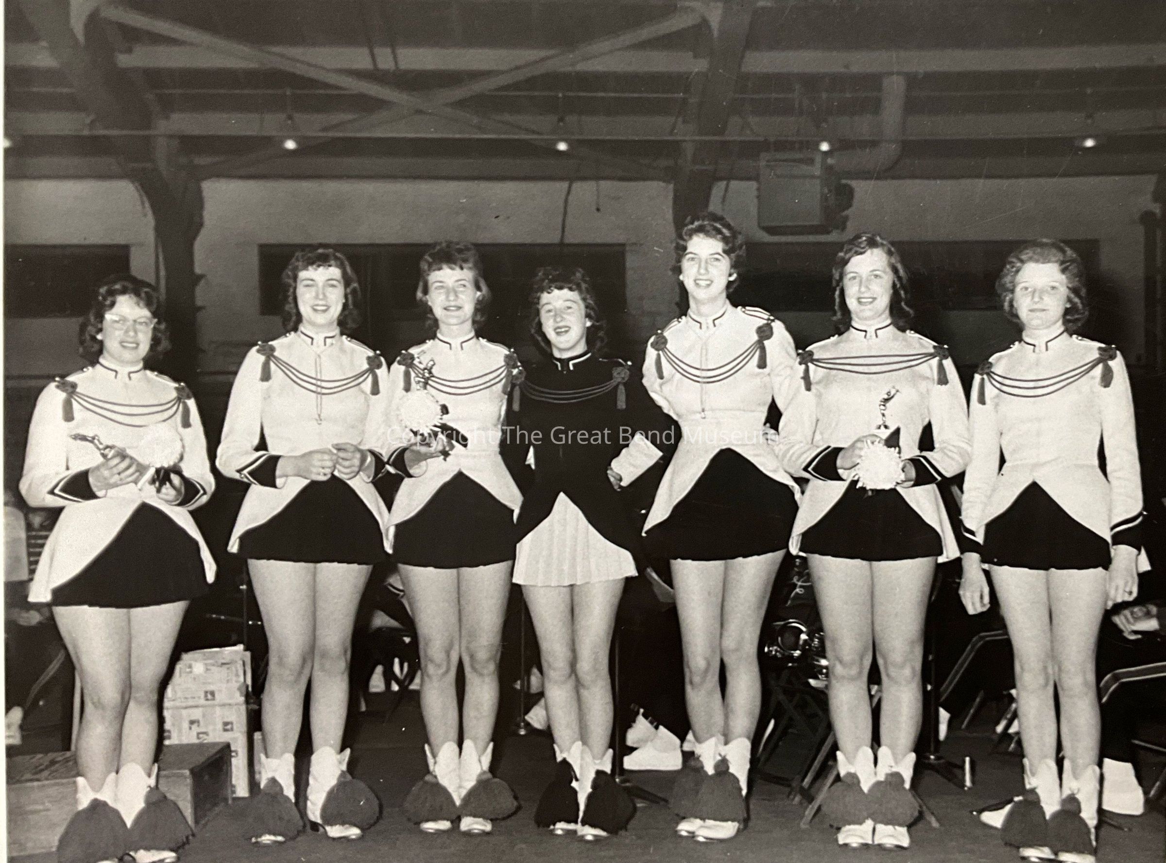 Judy Linca, DeeAnn Moore, Kay Buffington, ”Jigger” McGraw (head majorette), Kay Hudkins, Carol Foote, Rebecca Blackburn