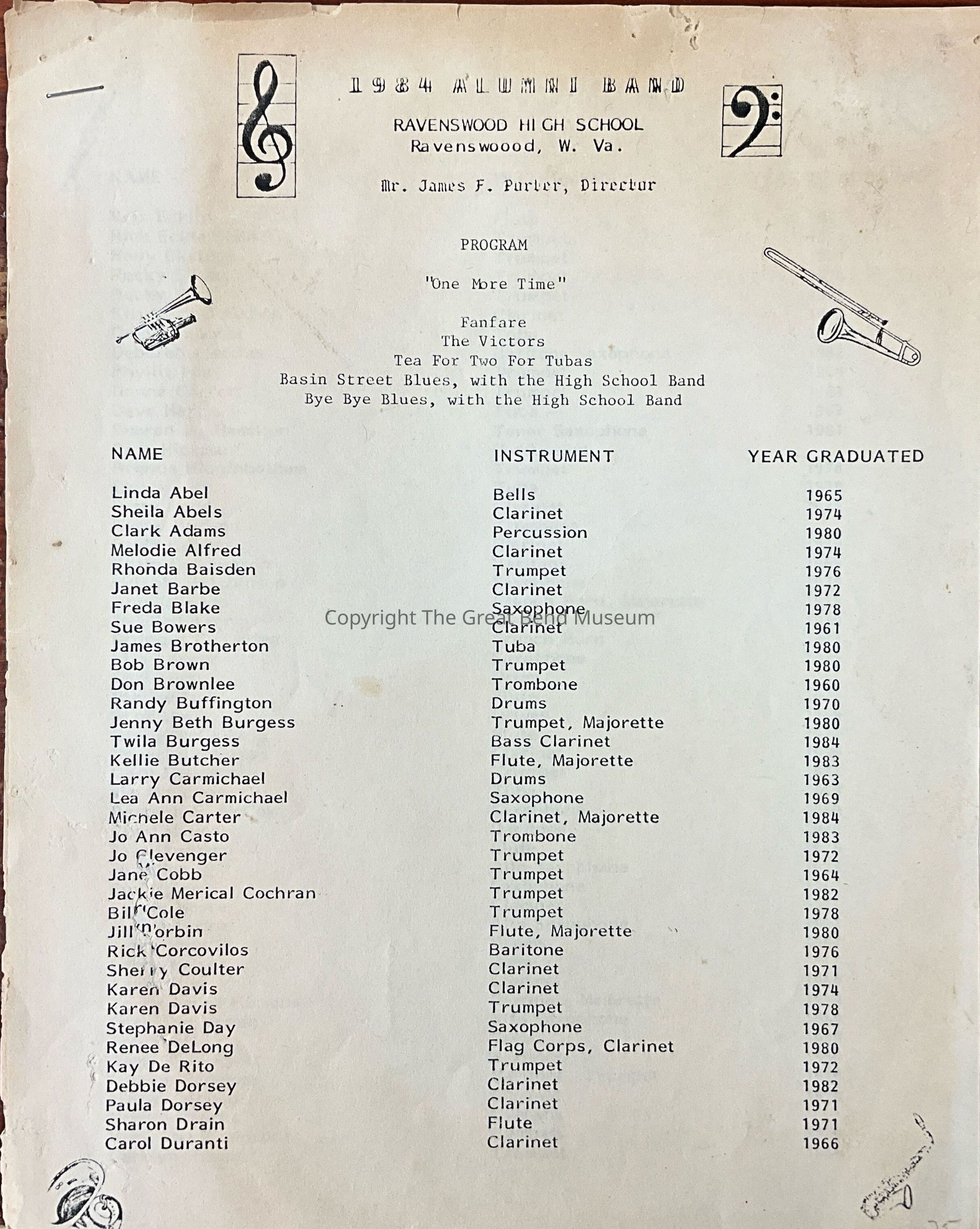 1984 Alumni Band - Ravenswood High School - Ravenswood W. Va. - Program