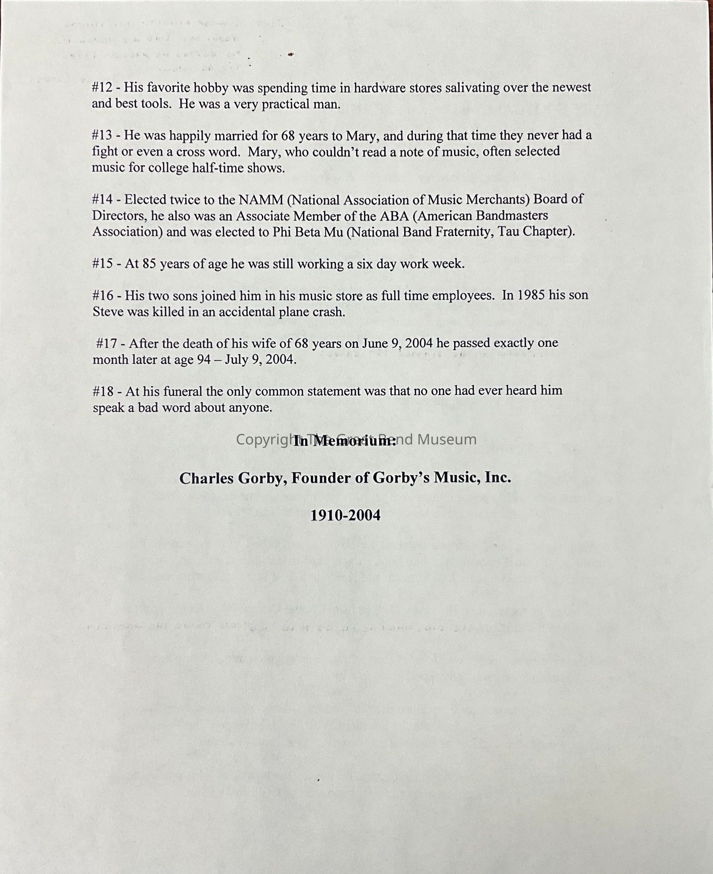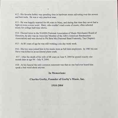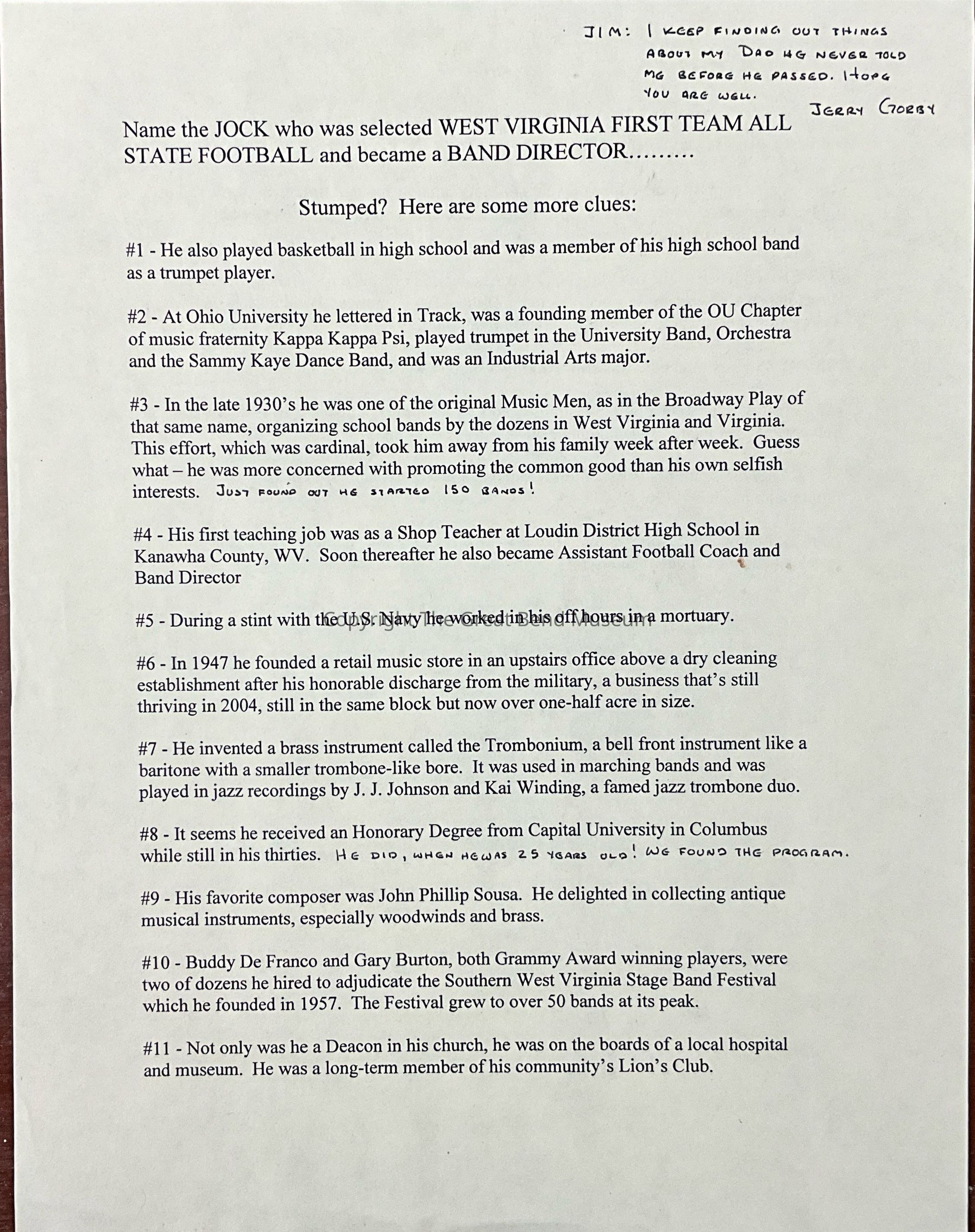 Letter written by Jerry Gorby about his father, Charles Gorby, to Jim Porter