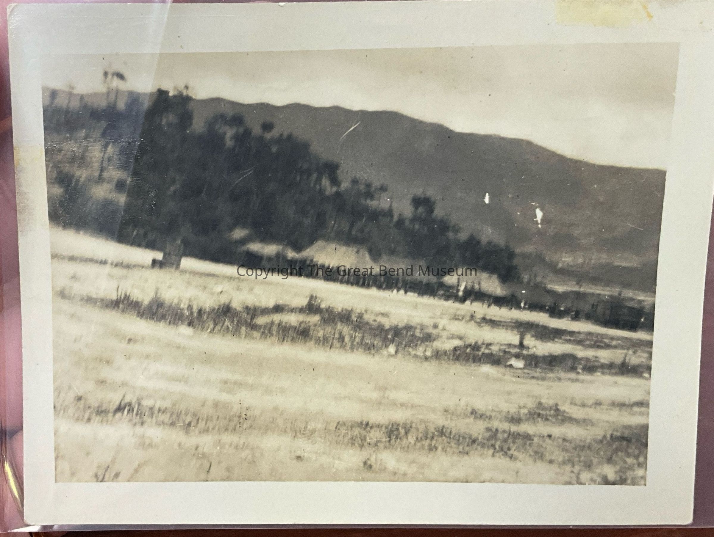 tents in a field— written on back—“Looking from the supply tent across the ball field to the kitchen and mess area—Notice the line—Last of July 52–Punch Bowl—The high hill is the back (?) our side of the line. Carl”Acquisition