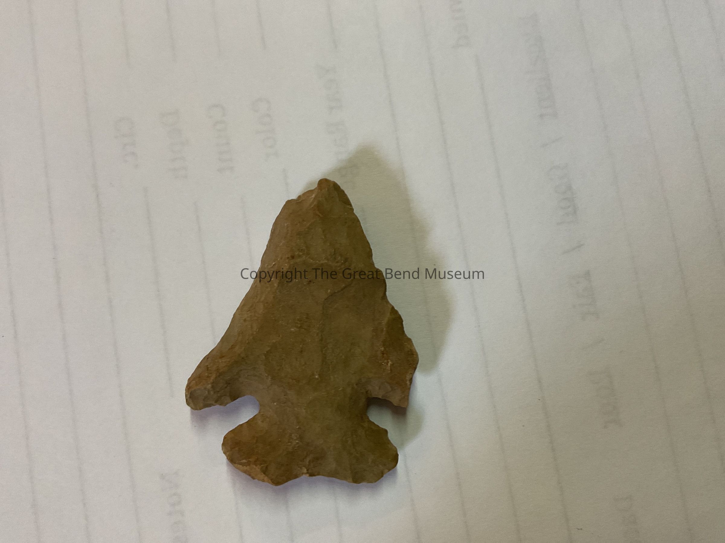 Thick wider point. Blade edge slightly excurvate. Sometimes ending in barbed shoulders. Prominent shoulders, flared corner notched base. Likely used as a knife. Resharpened by beveling one side of blade.Acquisition