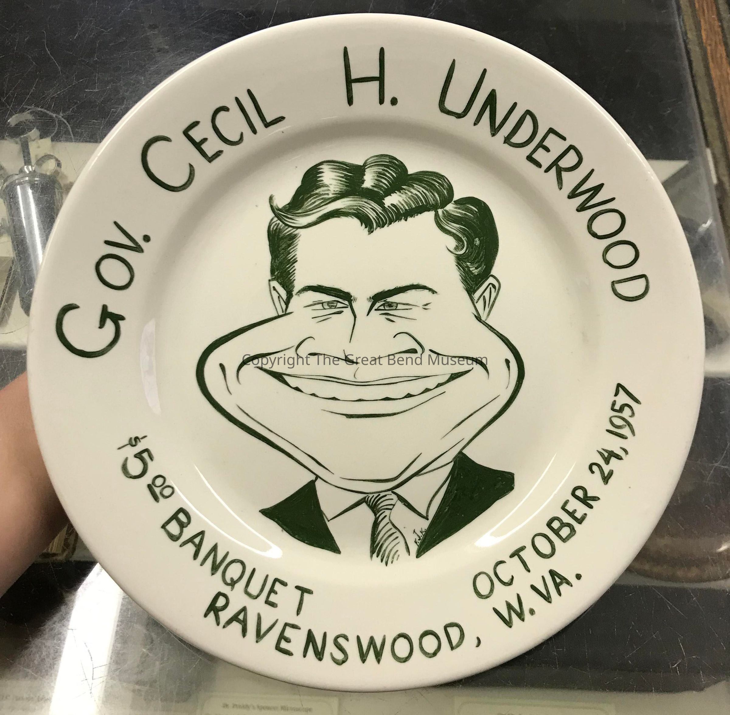 China plate - Gov. Cecil H Underwood, $5.00 Banquet, October 24, 1957, Ravenswood, WV