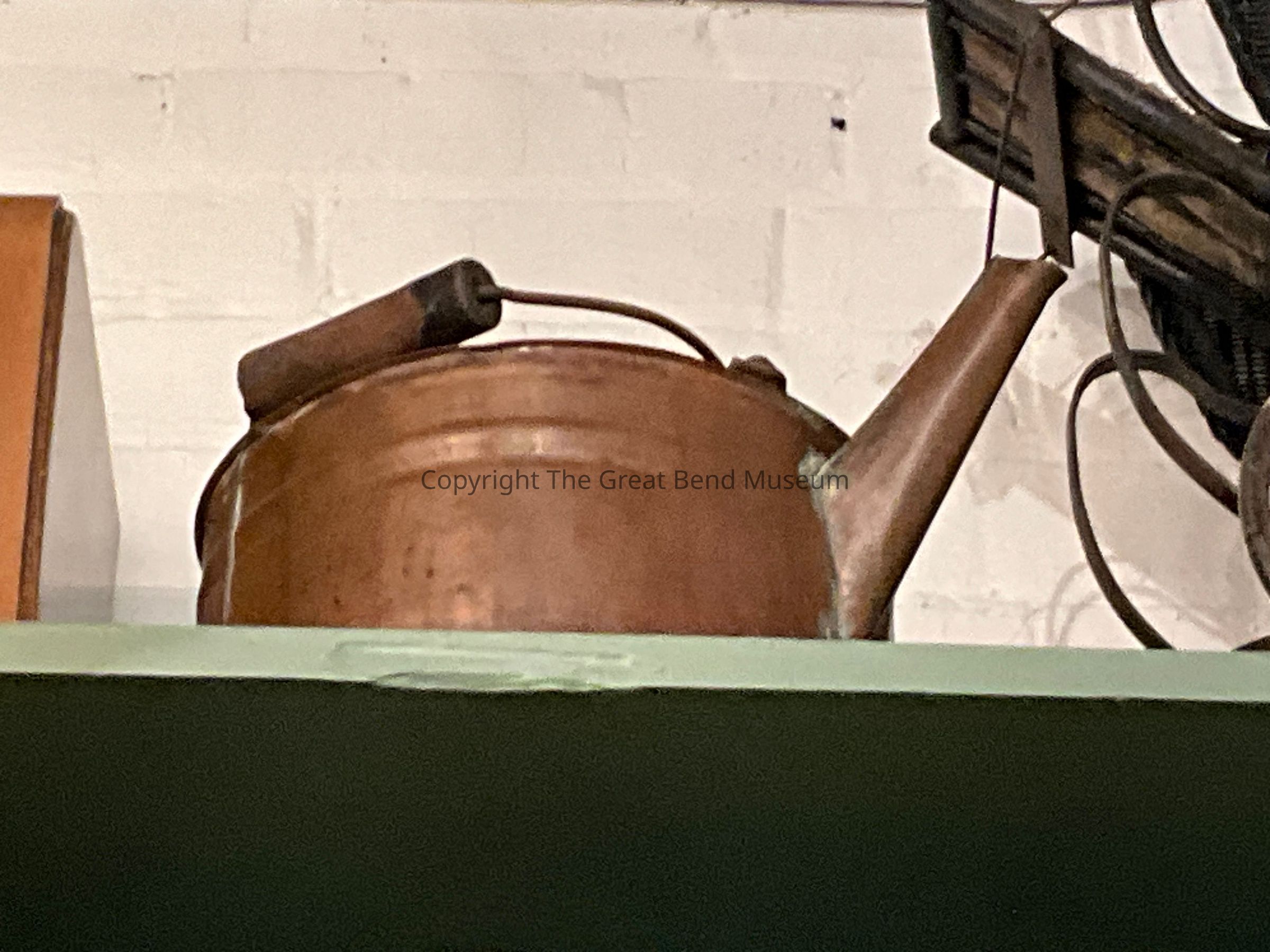 Handmade copper tea kettle owned by Mrs. Luella Milhoan, Jackson County.