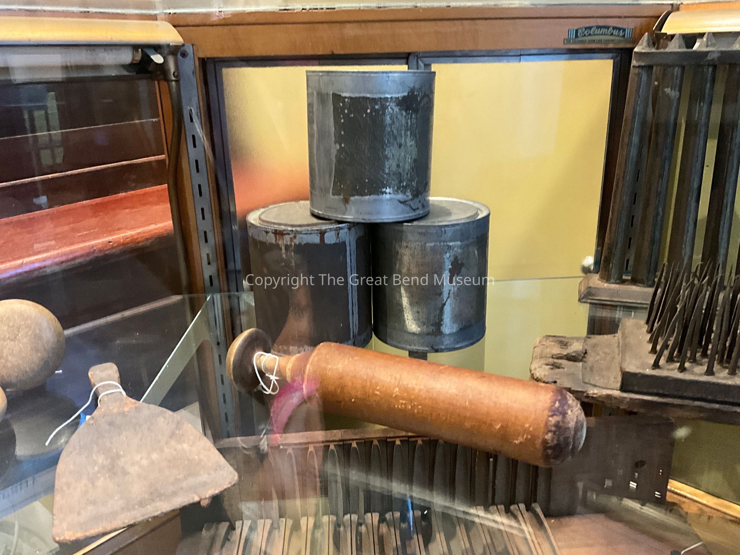 No. 2 --- Tin cans that are used for home canning, has "grapes, black B, Elder B, Rasp B, Traw B, tomatoes, peaches quinces, rhubarbs, currants" stamped into the top in a shape of a sun, all silver tin has a diamond with a circle in it on the bottom.Acquisition