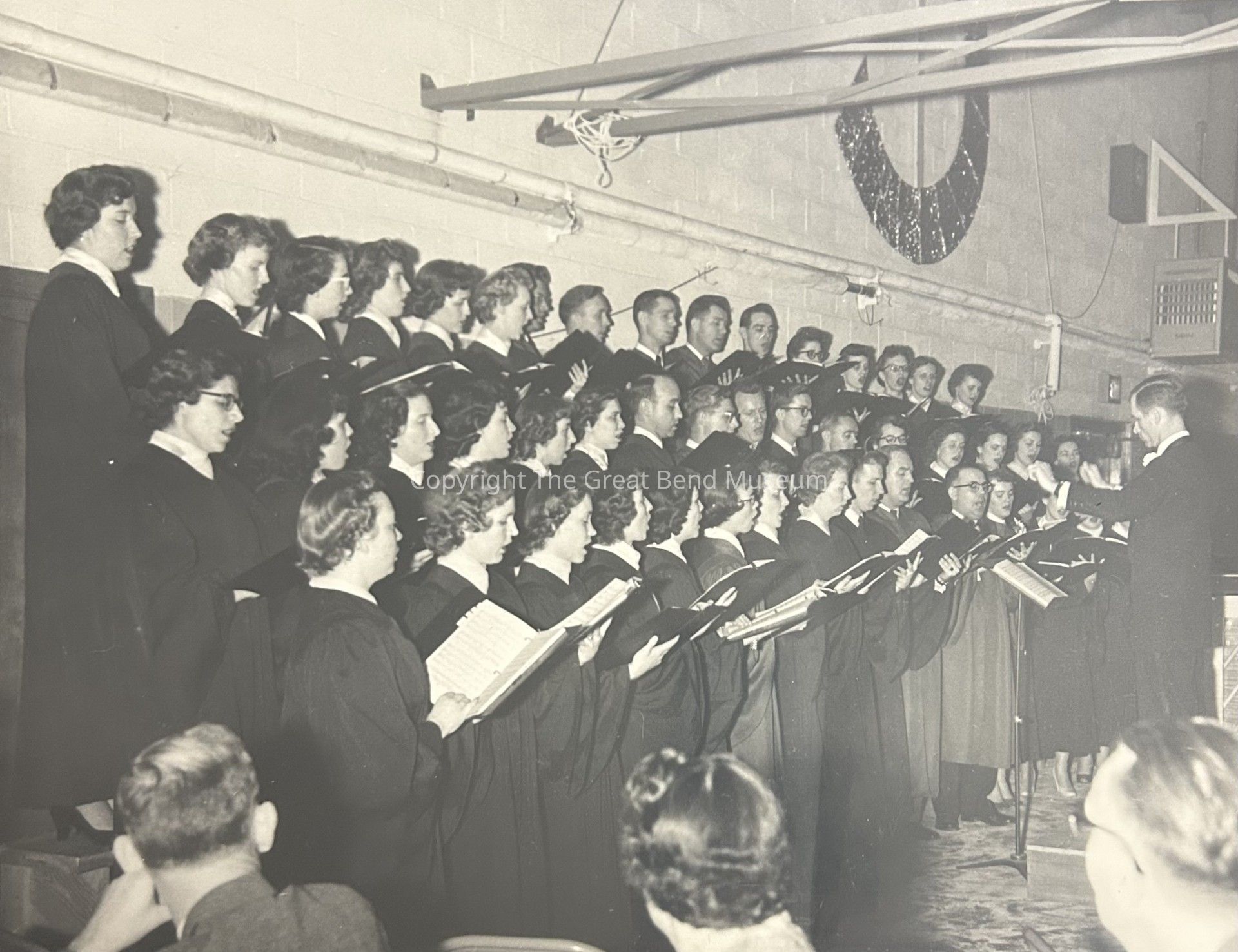 Choir and Director singing for $5 Banquet - 1956 - wearing robes and holding song booksPhotograph Details