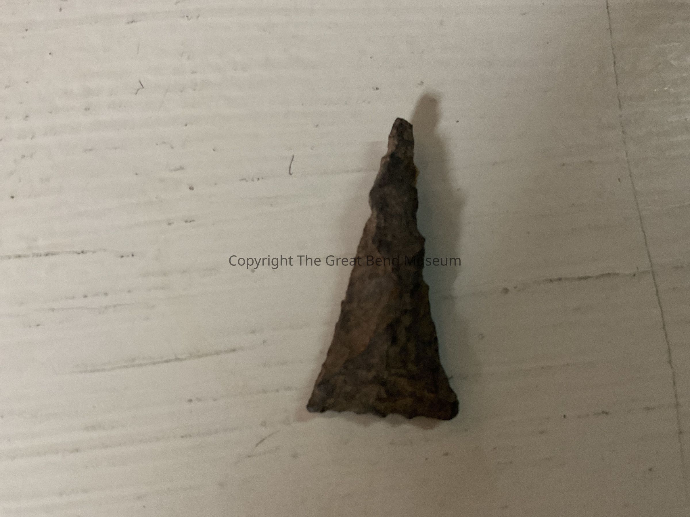 Dark Gray slender point. Shaped like an Isosceles triangle. Edges are somewhat serrated from resharpening. Basal edge is straight and thinned.Acquisition