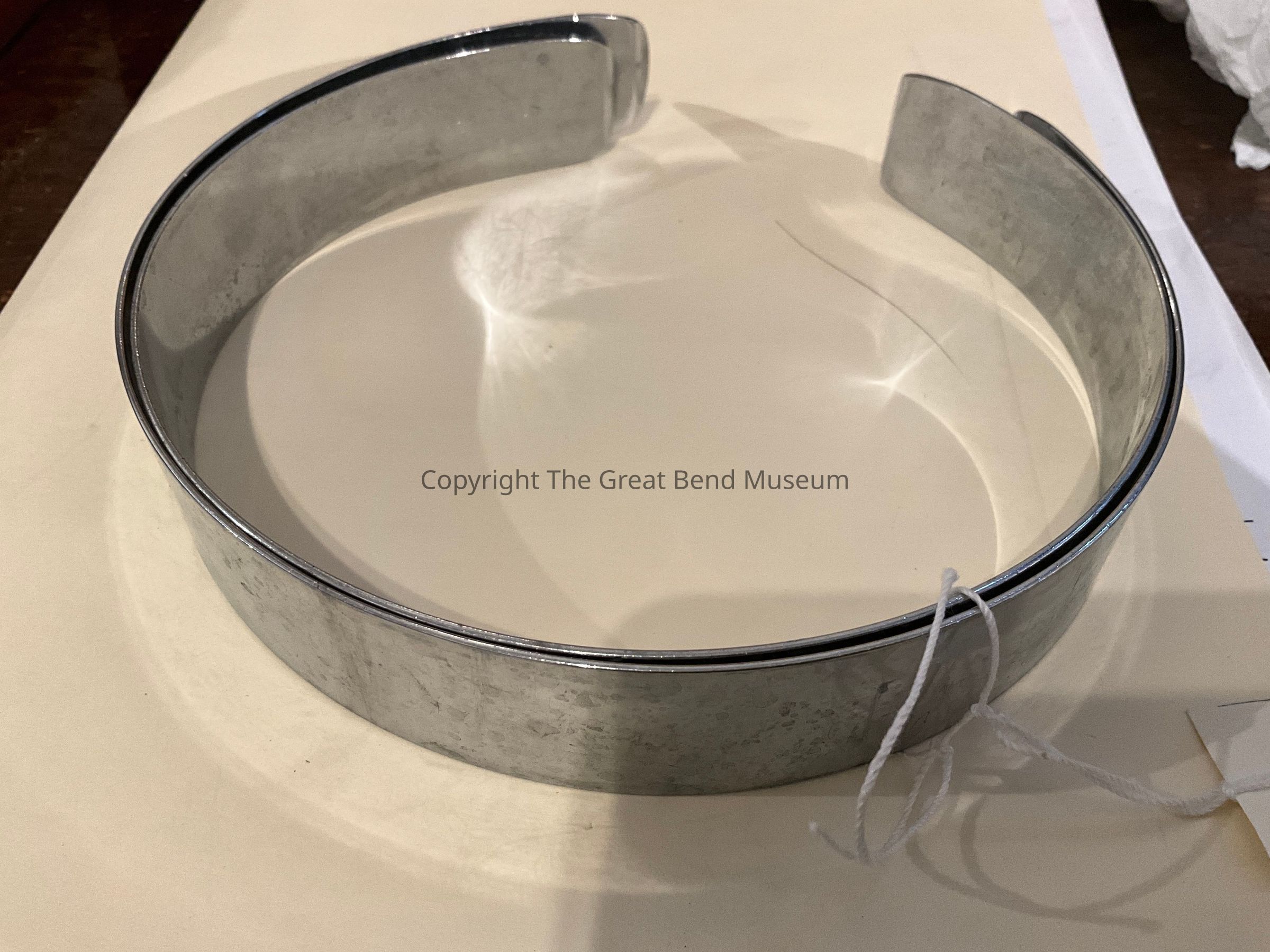 2 count of smooth rounded stainless steel bands. Bands have break in them with curved ends on both sides of the break. Bam\nd is 1 1/8 inch wide. Band is flat and smooth metal.Acquisition