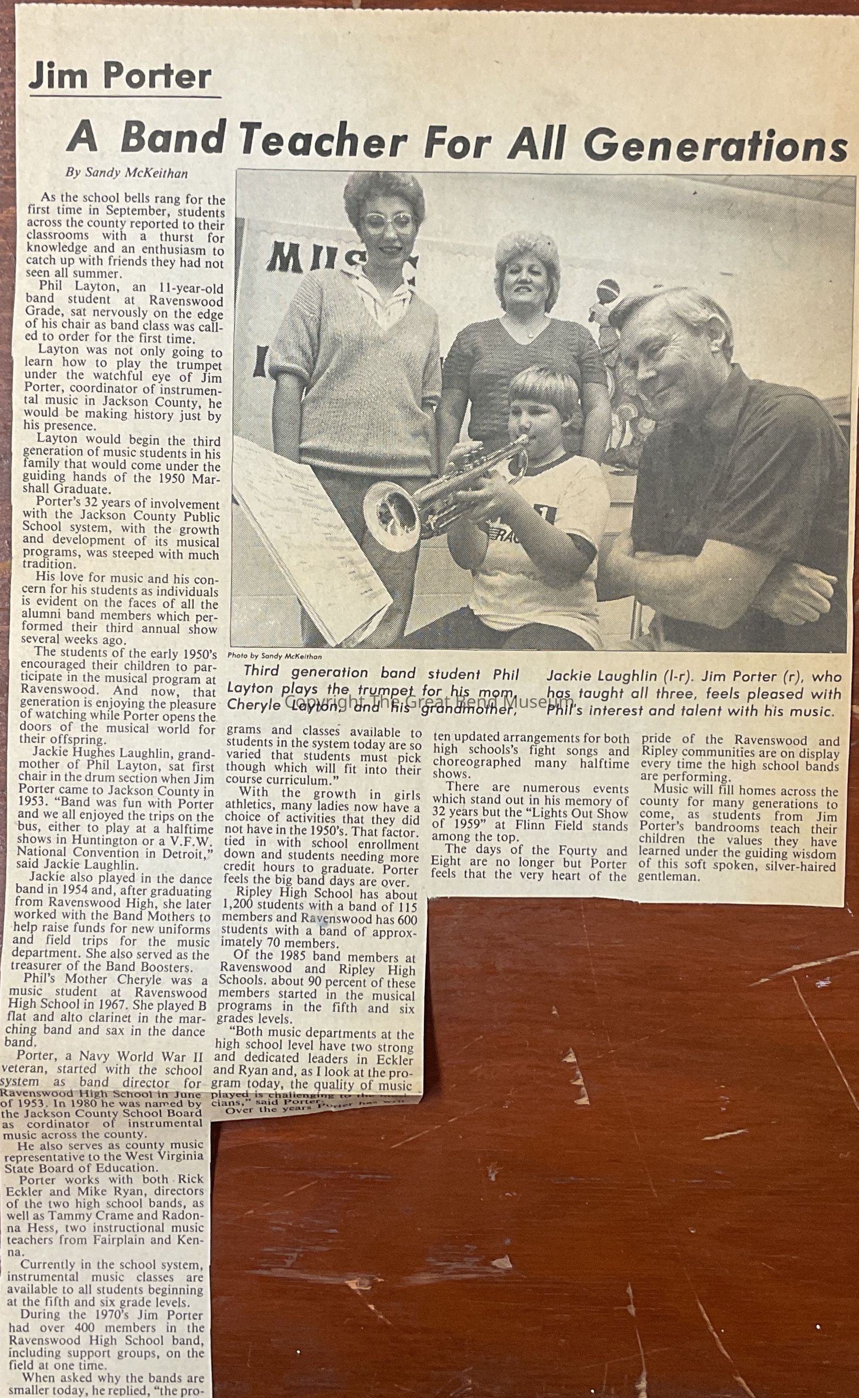 Jim Porter teaching third generation band student Phil Layton as his mother and grandmother watch