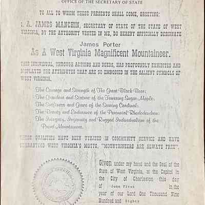 Letter to Jim Porter awarding him with the Magnificent Mountaineer AwardAcquisition