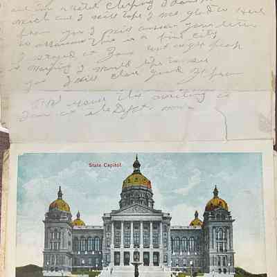 Postcard to Miss Flossie Cole From Des Moines, Iowa