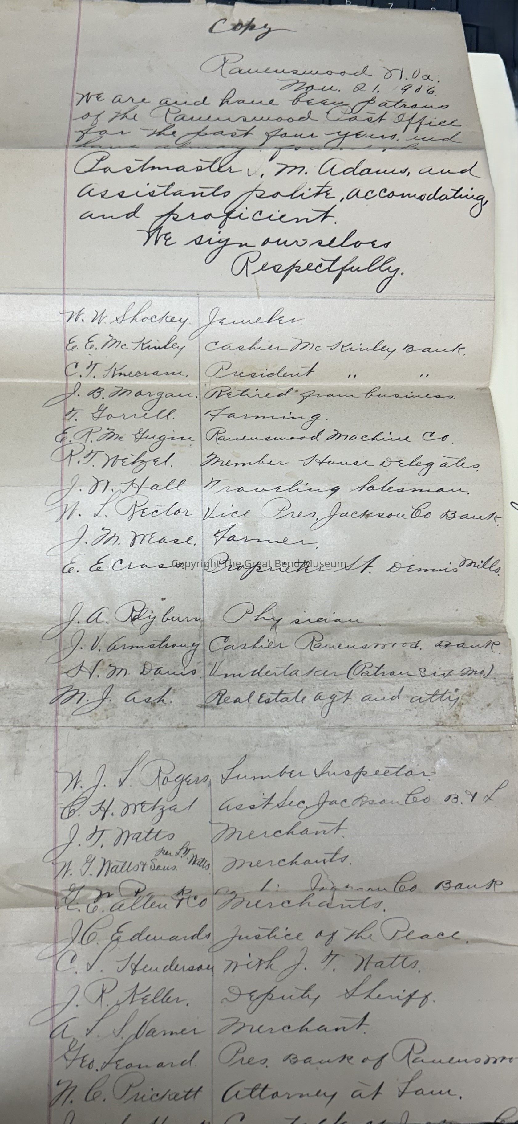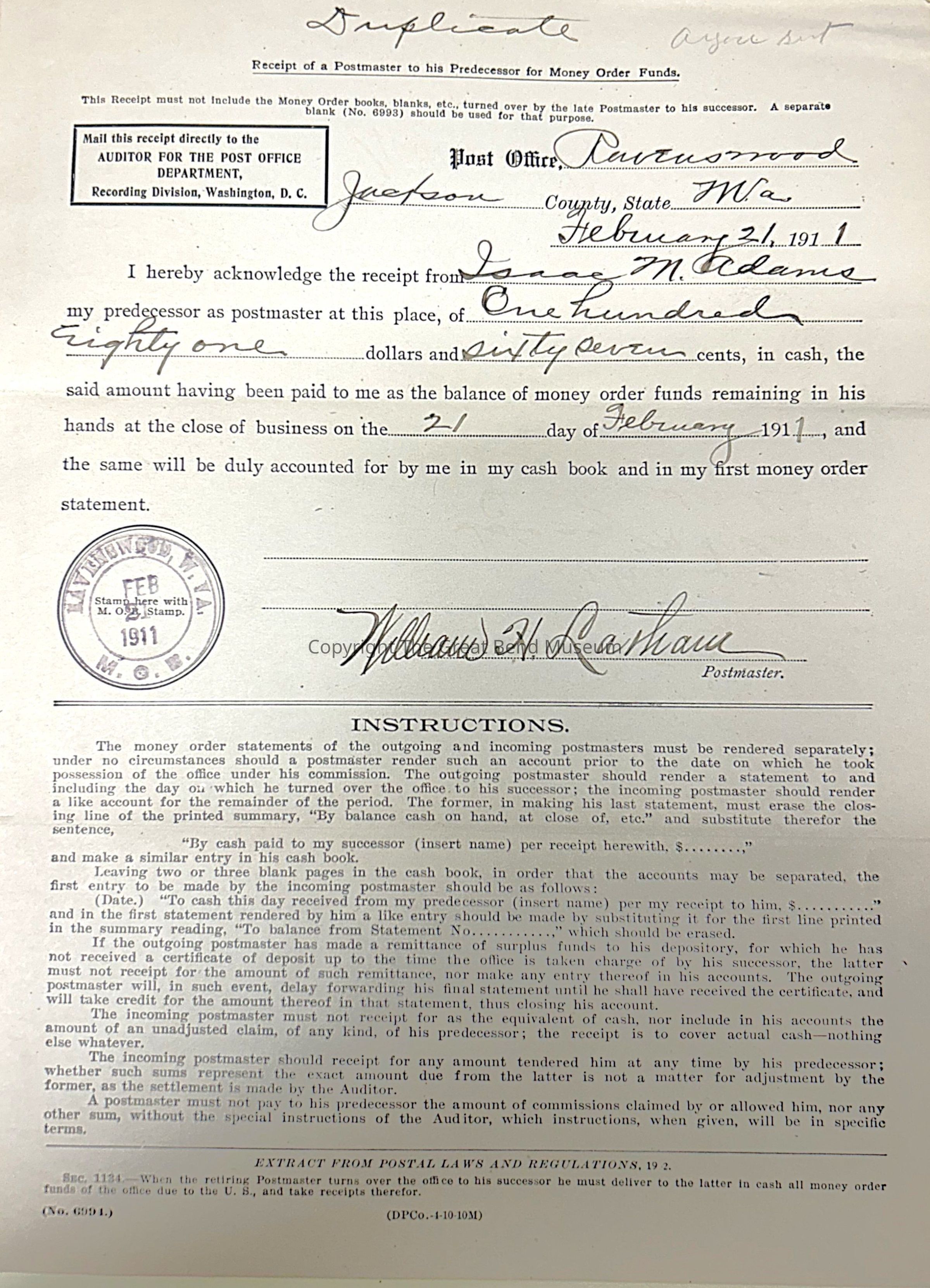Misc. receipts from I.M. Adams-Lawyer including utility receipts, payments from clients, and a bank payment.Acquisition