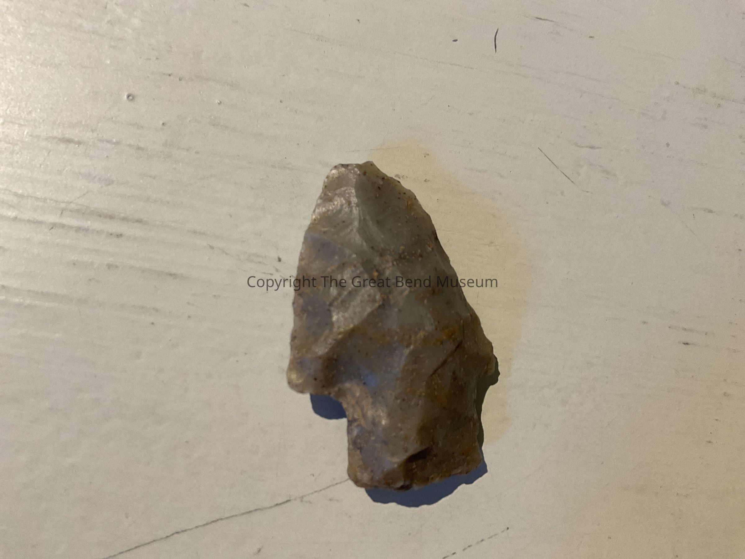 Light Gray triangle shaped blade, has straight stemmed base. One very weak shoulder. Biconvex in center of blade. Thick blade.Acquisition