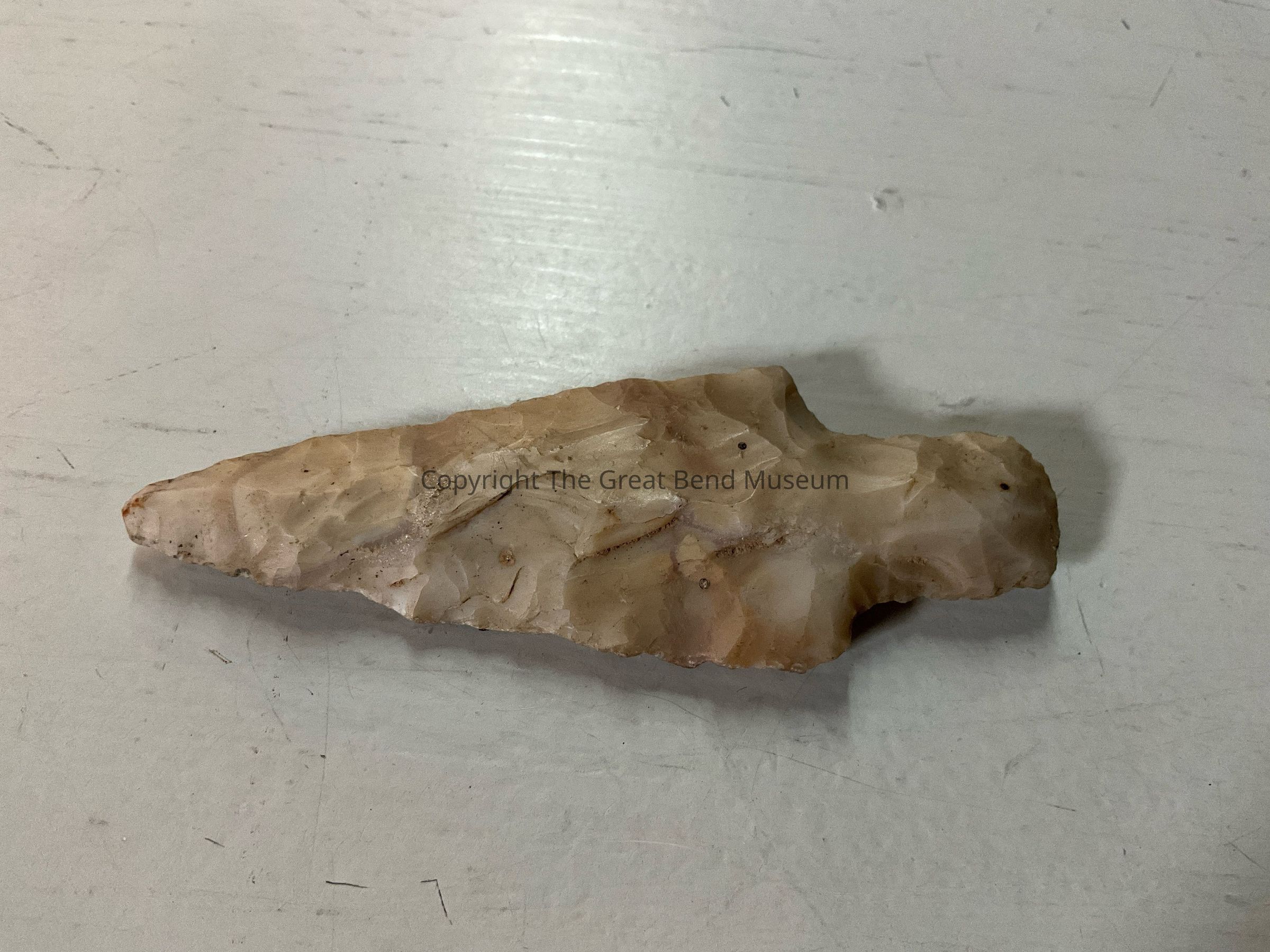 Long narrow point. Shoulders are weak. Stem is rounded with edge worked thin. Blade is thicker in cross section. Point is light tan in color.Acquisition