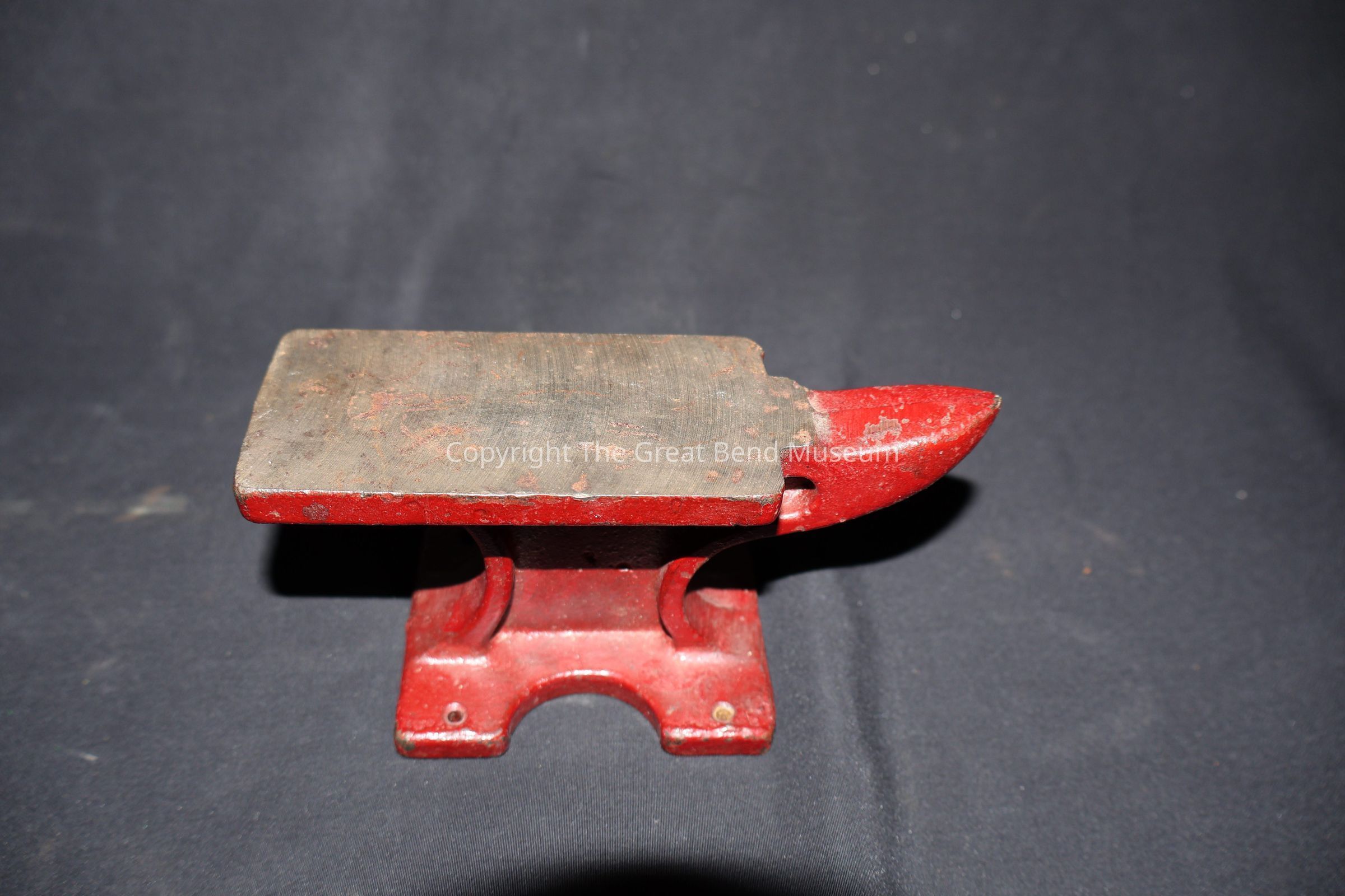 iron anvil, red/ rust color, with top natural Iron (no paint). Holes on each corner of bottom part.
