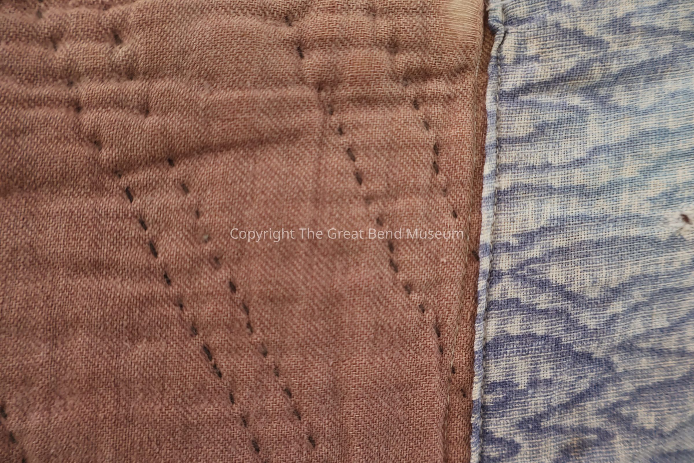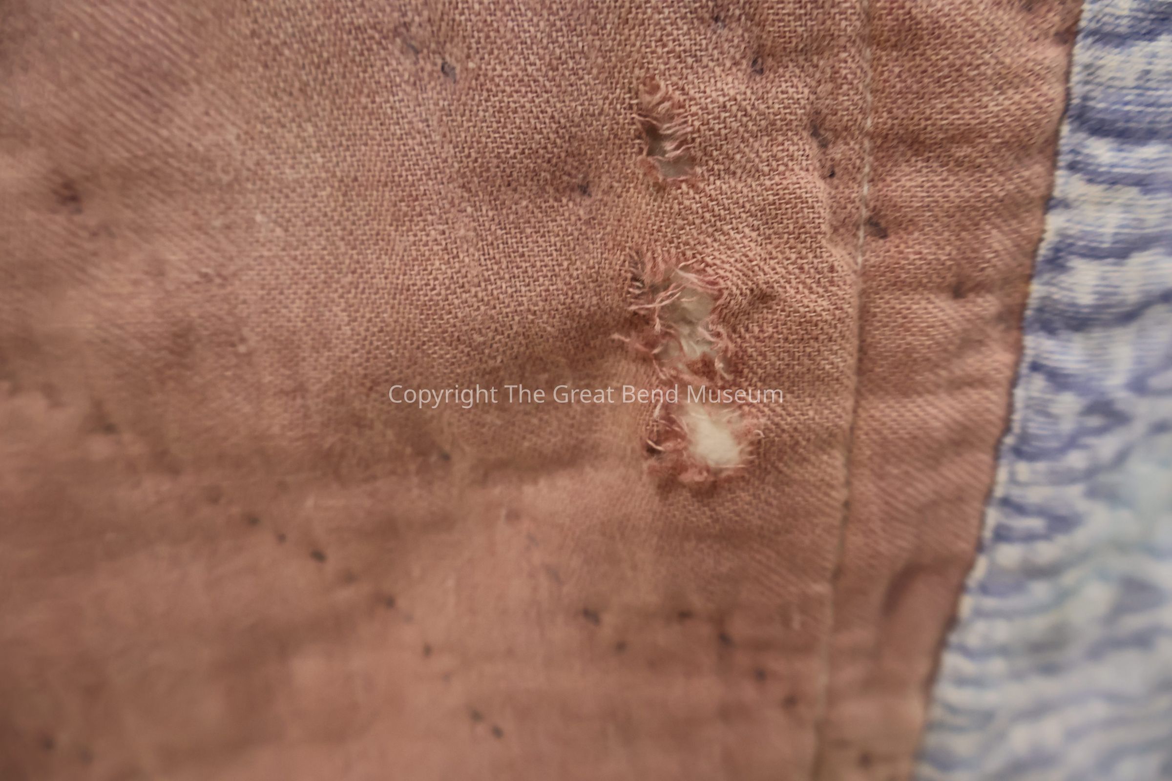 Once on display in Sayre Log House, uncertain if connected. quilting very similar to white and yellow Sayre quilt, may have been made by same person.Acquisition