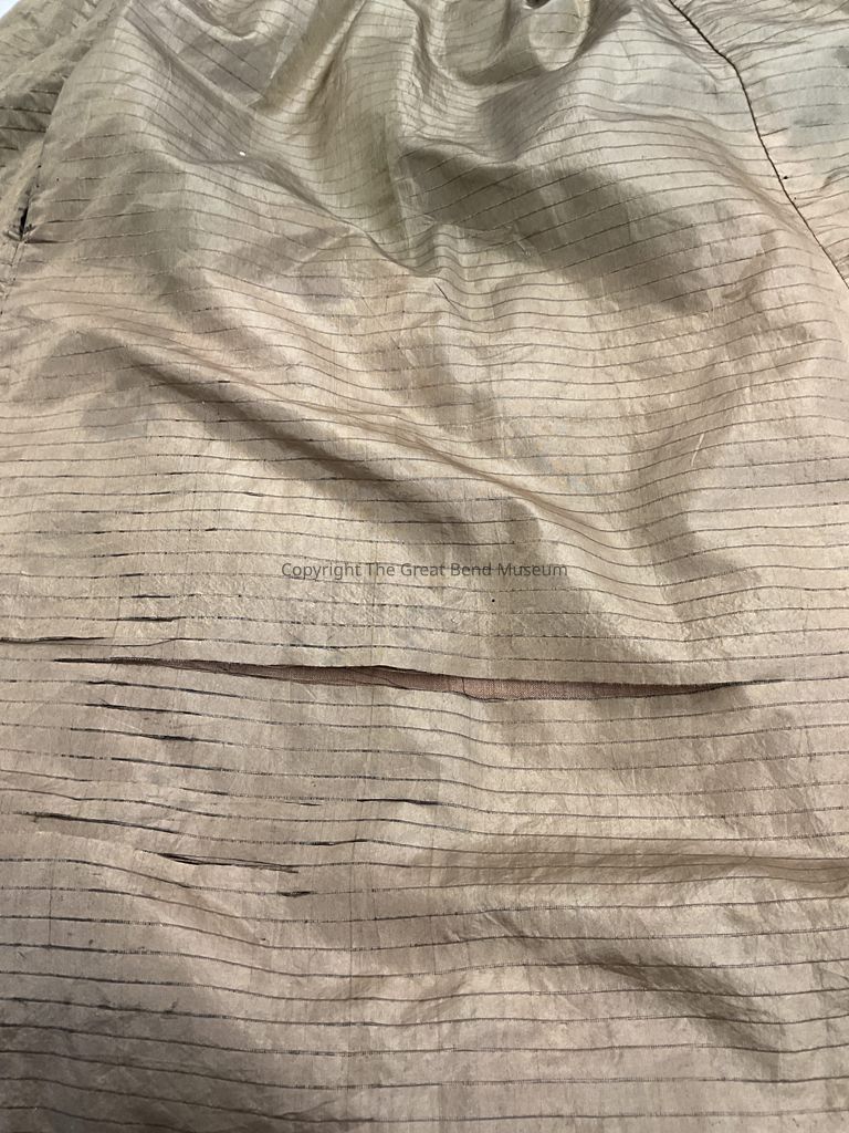 Fabric very fragile and will tear with too much handling. Multiple rips, tears, and shredding prominent.