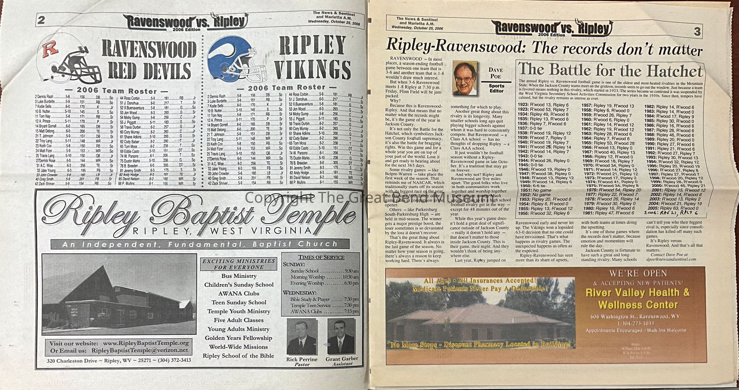 In depth news paper coverage of the 2006 Hatchet Game Between Ripley High School and Ravenswood High School