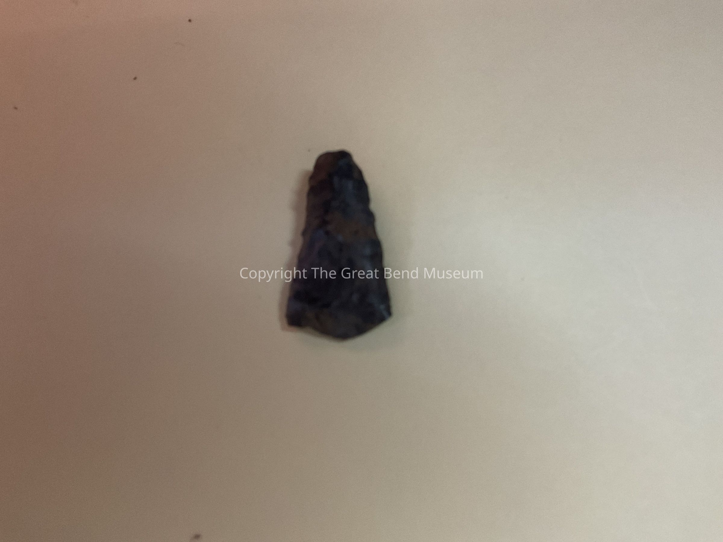 Small dark Gray point. Straight edged Isosceles shaped point. Basal edge is straight. Slightly convex is center of basal edge.Acquisition