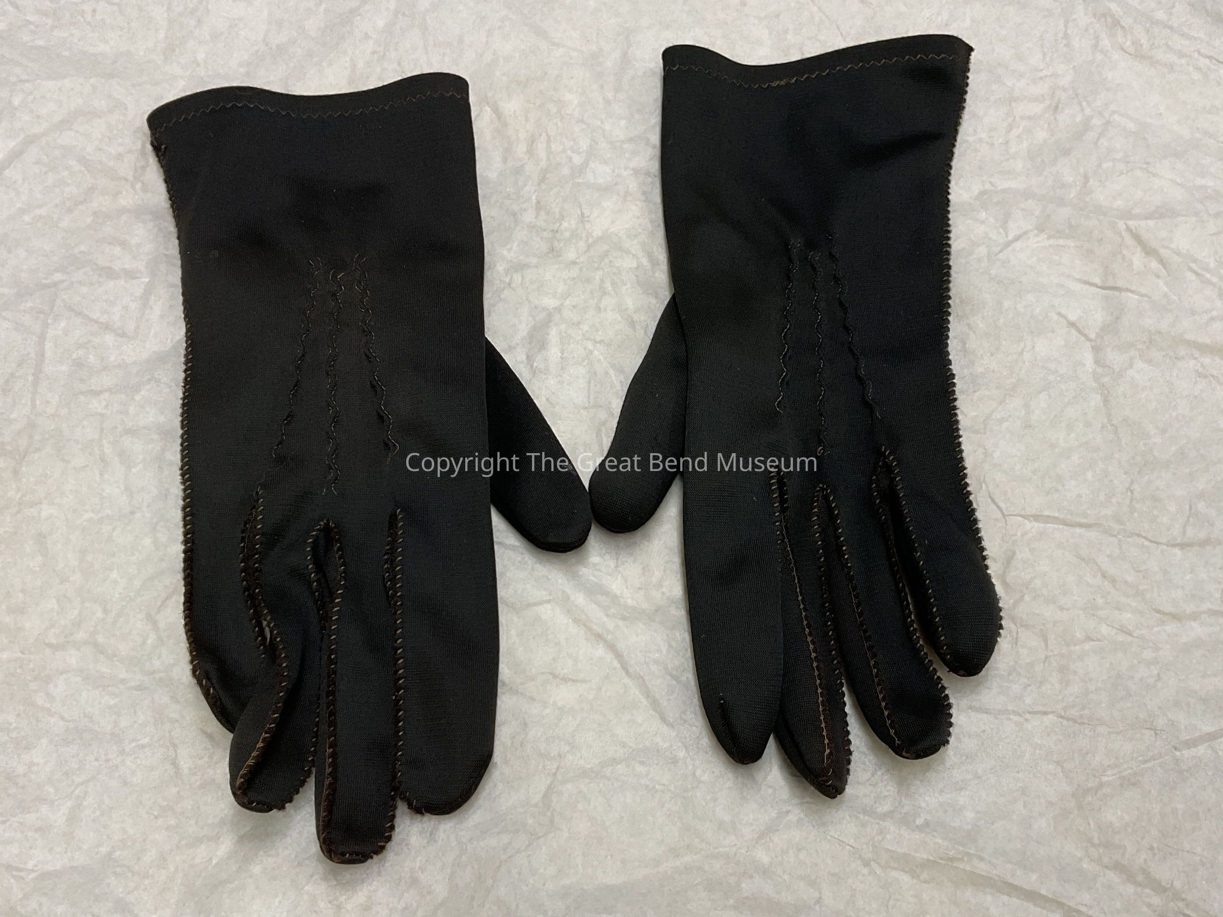 black cotton women's dress gloves. Has 3 decorative tucks running along the upper part of glove - hand stitched along edgesAcquisition