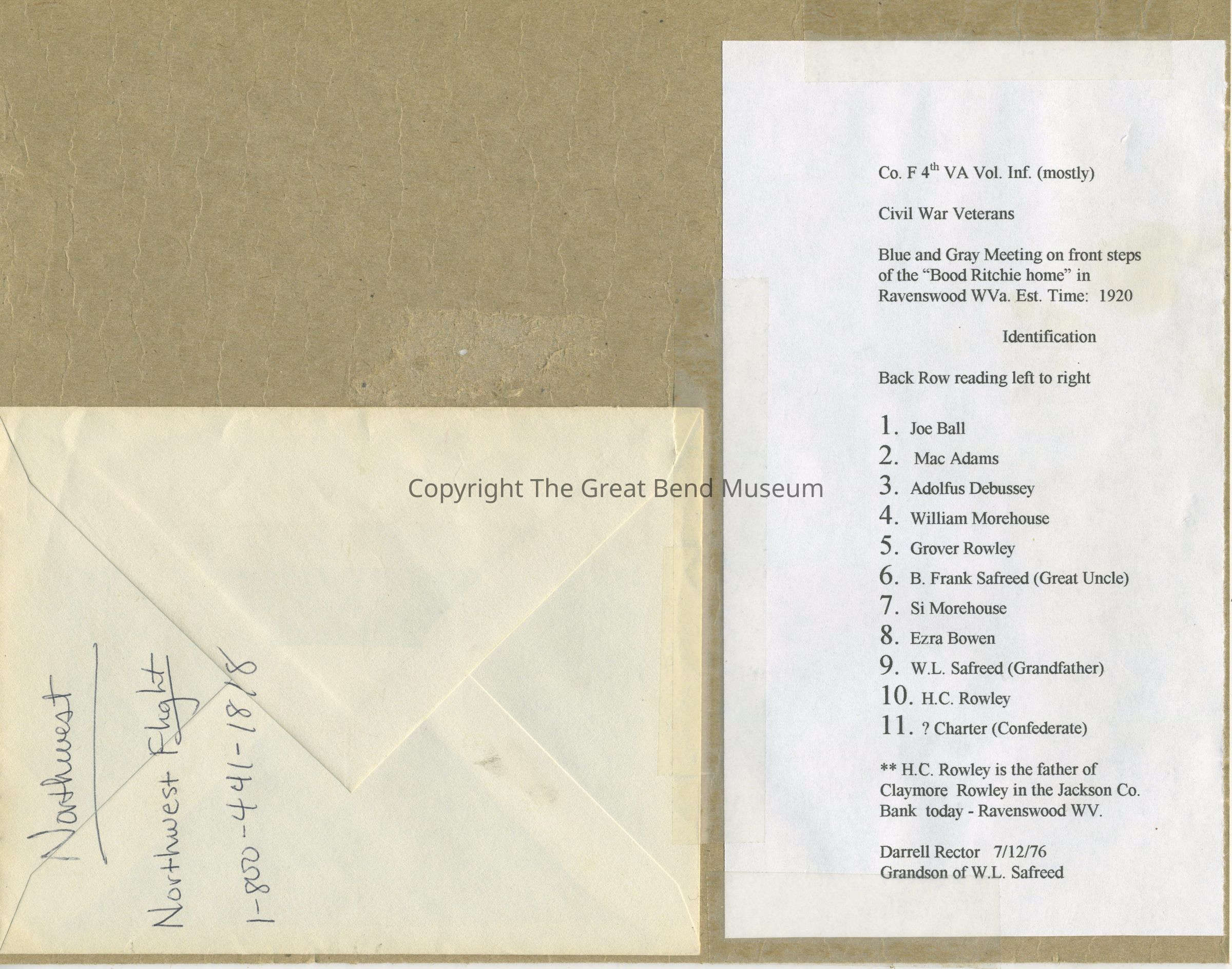 Joe Ball, Mac Adams, Adolfus Debussey, William Morehouse, Grover Rowley, Benjamin Franklin Safreed, Si Morehouse, Ezra Bowen, William L. Safreed, Henry Clay Rowley, Andrew Judson Charter, 4th VA InfantrySubject Place