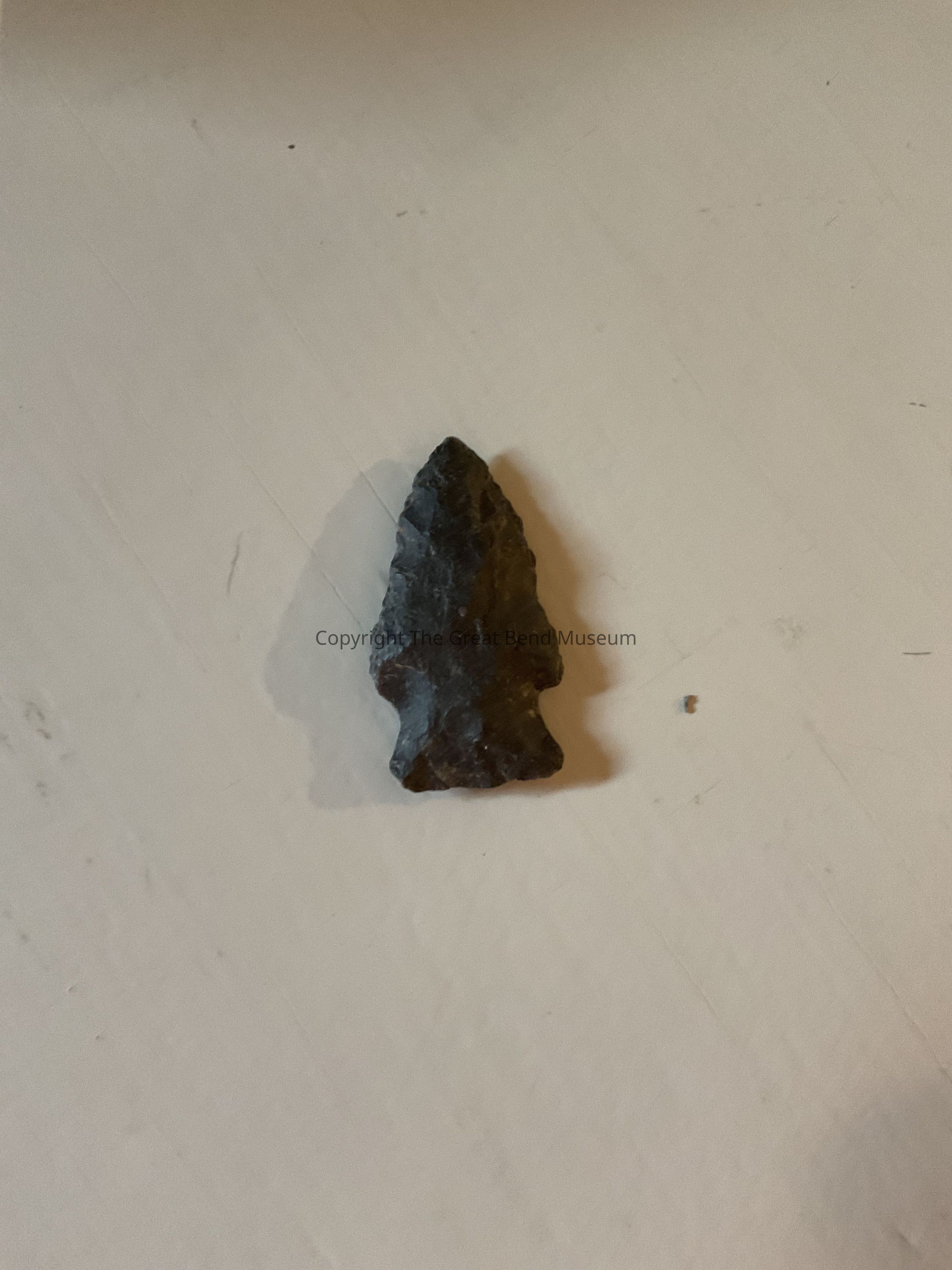 Small to medium dark gray almost black point. Thick side notched point. Notches close to the base.Base is straight, slightly convex. Edge base is ground smooth.Made/Created