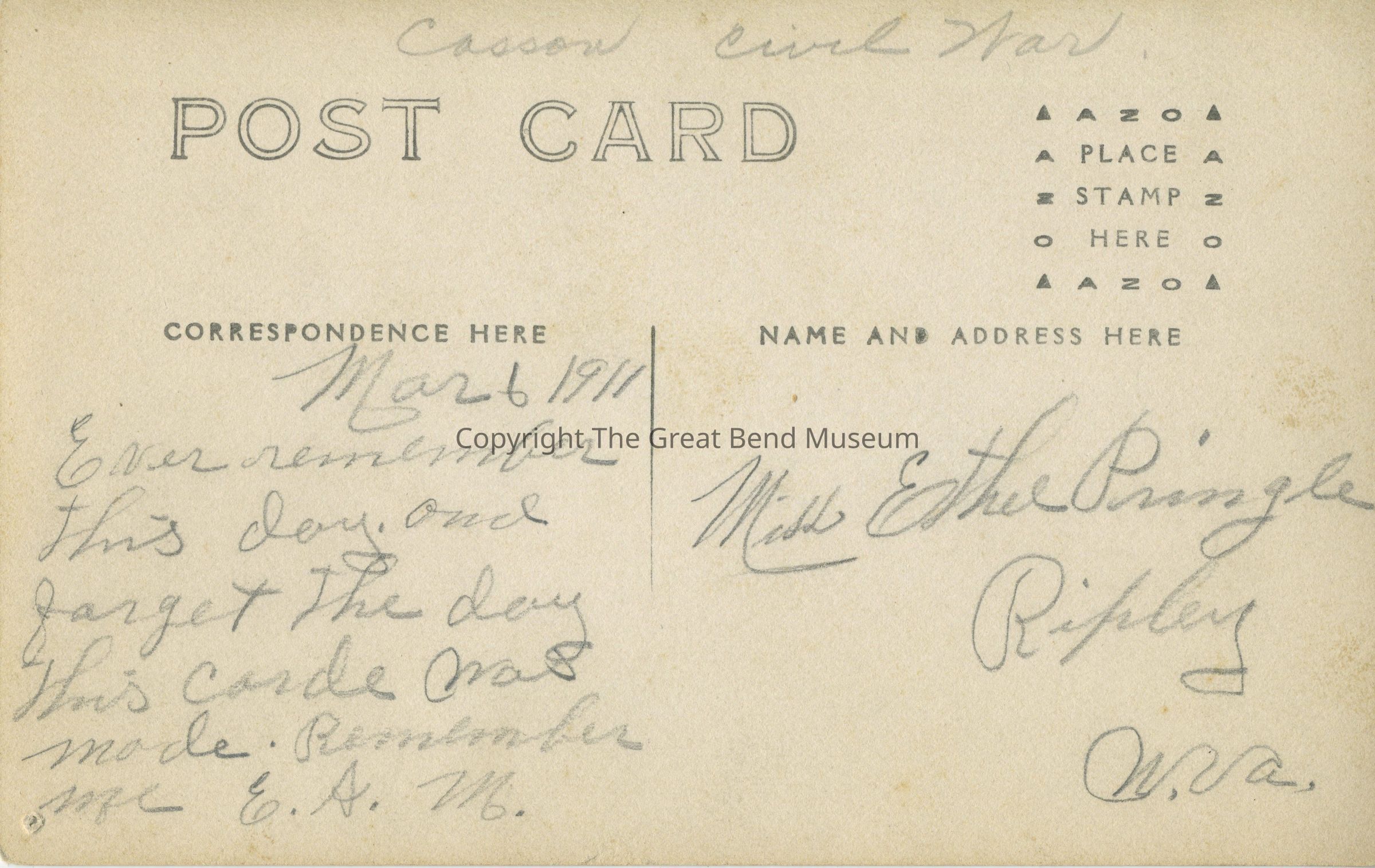 "Casson Civil War" (card not stamped). Mislabeled as civil war cannons in Ripley.Acquisition