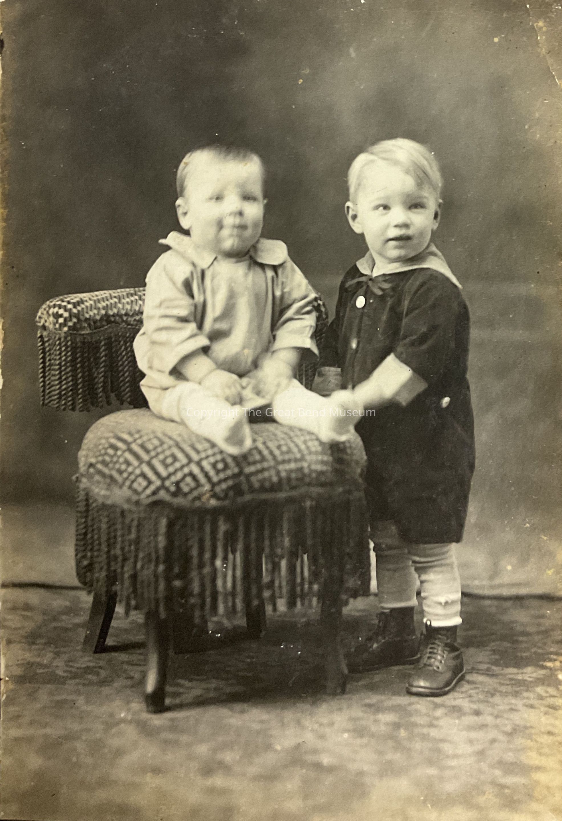 Picture of 2 little boys - youngest sitting on a stool. Boys are Bill and David Fleming. Bill was Chris Fleming Landis' Father.