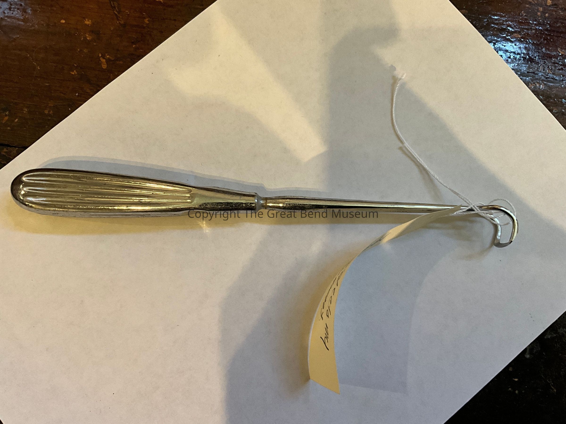 Long slender instrument with squared hook at the end . Ridges on handle for grip. Used for removal of adenoids. It has Penn. USA engraved on blade.Acquisition