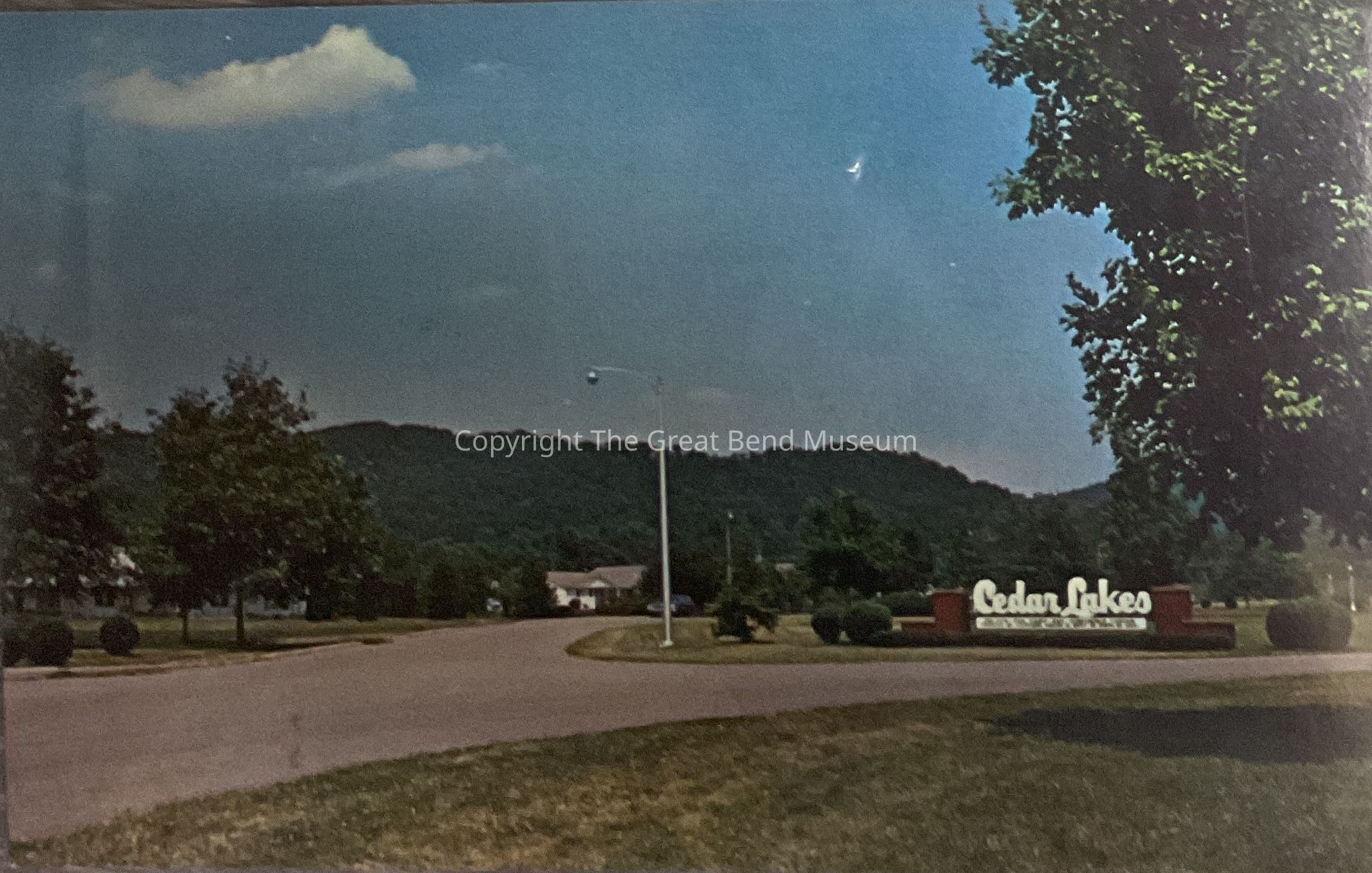 Postcard photo of entrance to Cedar Lakes, Ripley, WV. Photo was taken by Paul's Studio, Ravenswood, WV. Shows Cedar Lakes sign in big white lettersPhotograph Details