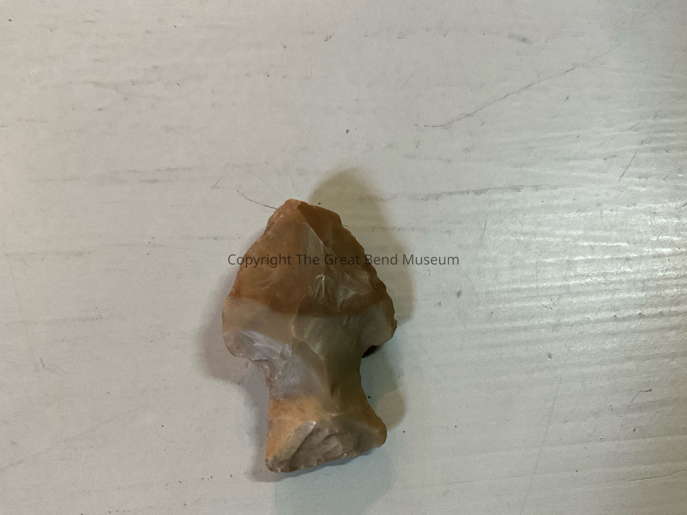 Triangular shaped blade with tendency to be serrated. Basal edge straight and thinned. Wide shoulder notches with longer stem. Point is thicker in the middle.Acquisition